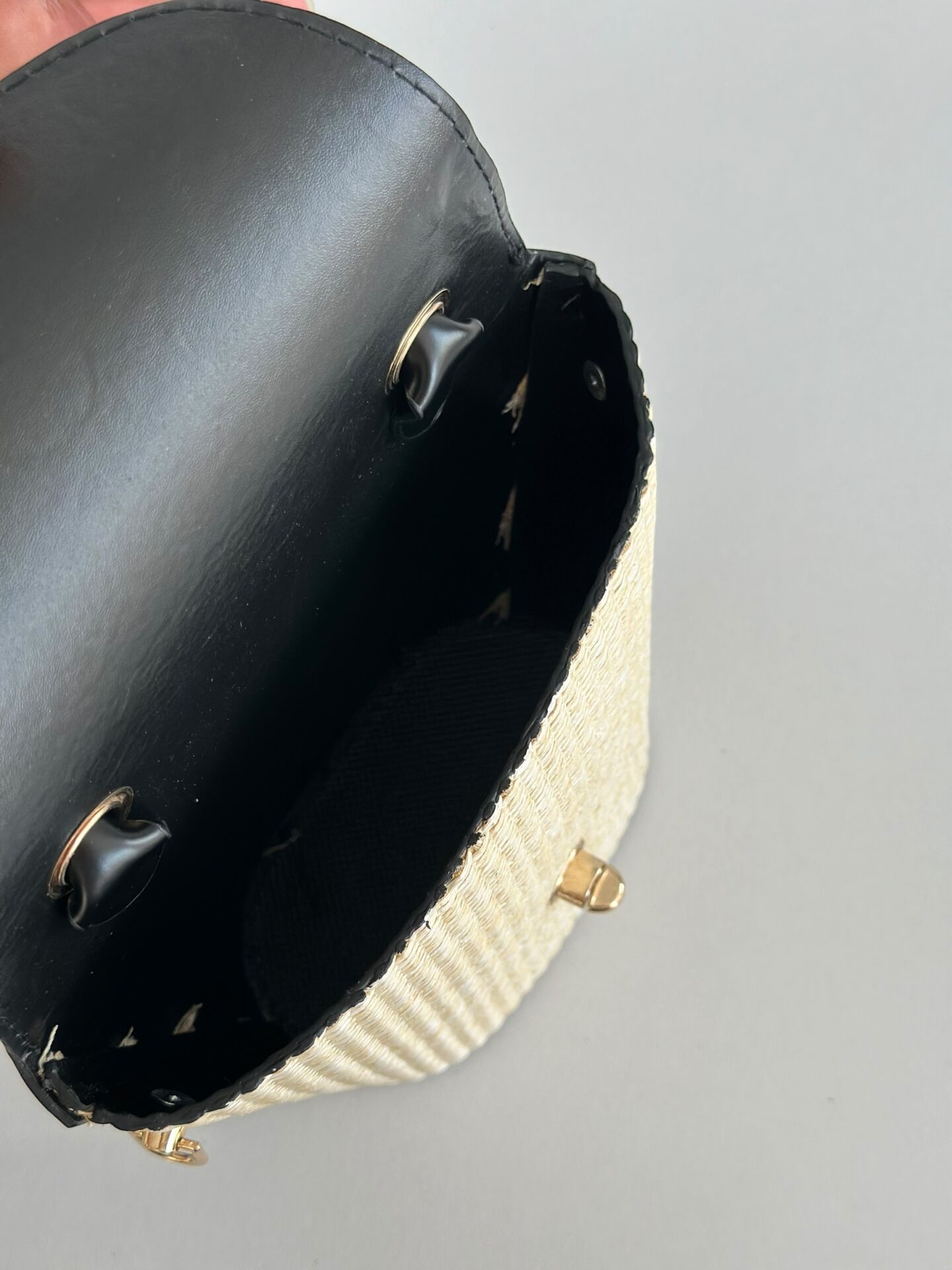 • Materyal: Suni deri & hasır dokulu dış yüzey