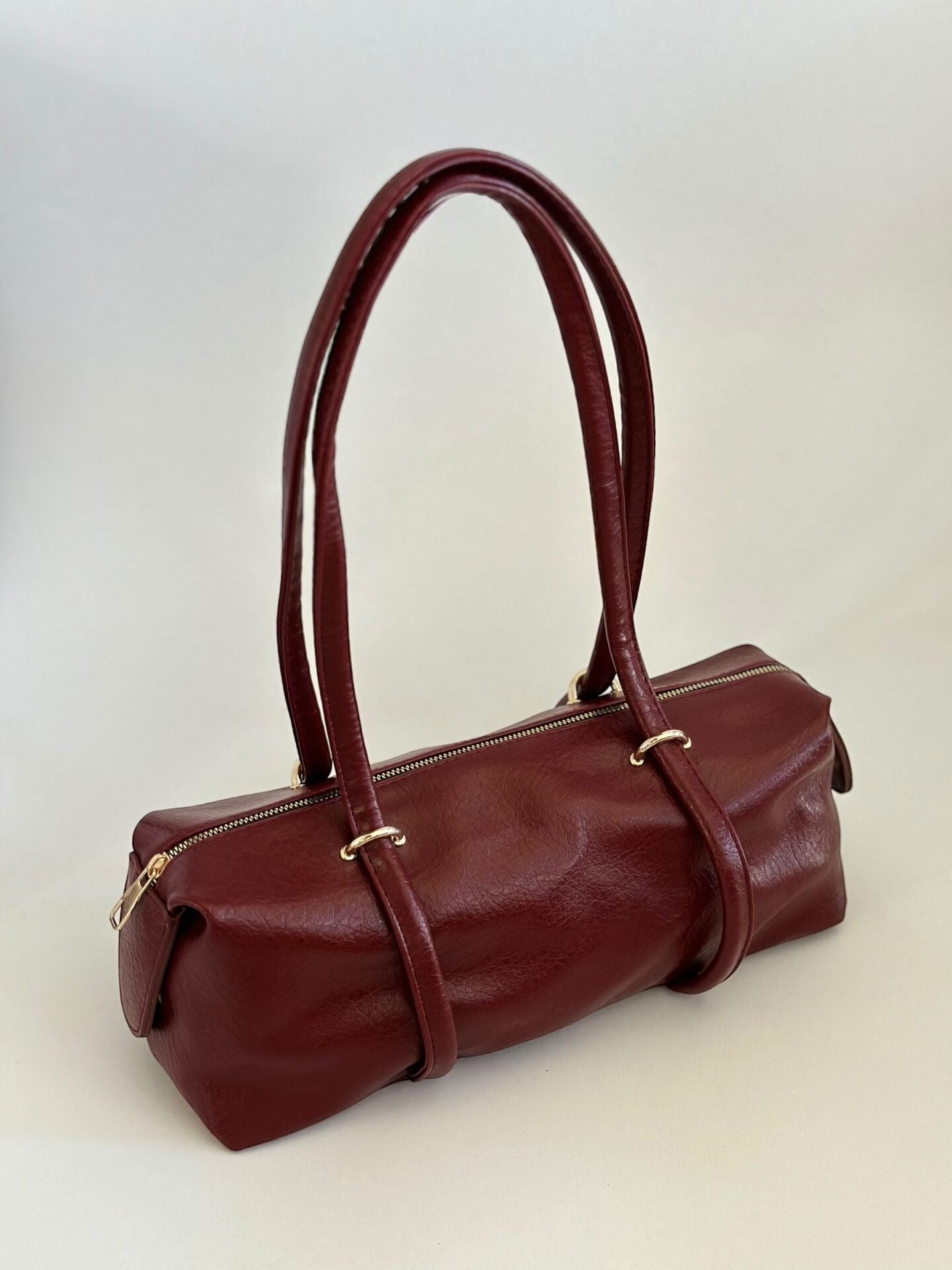 Aura Silindir Çift Saplı Omuz Çantası Bordo