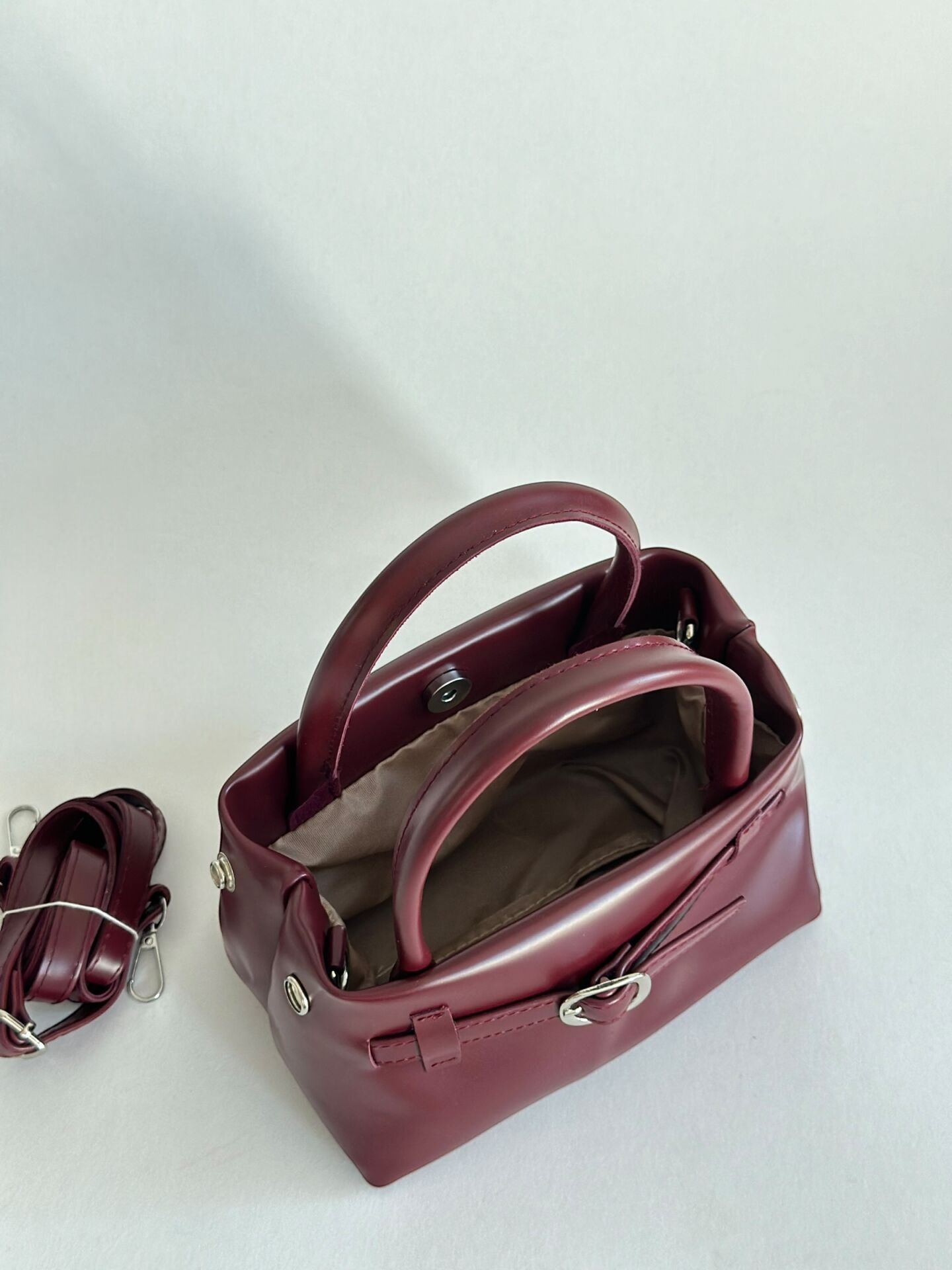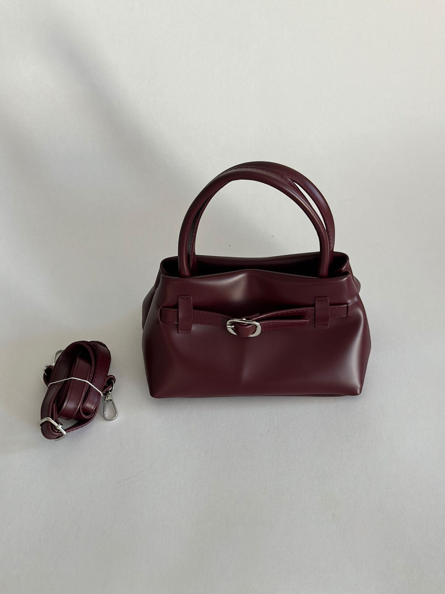 Buckle Mini – Tokalı El ve Omuz Çantası Bordo