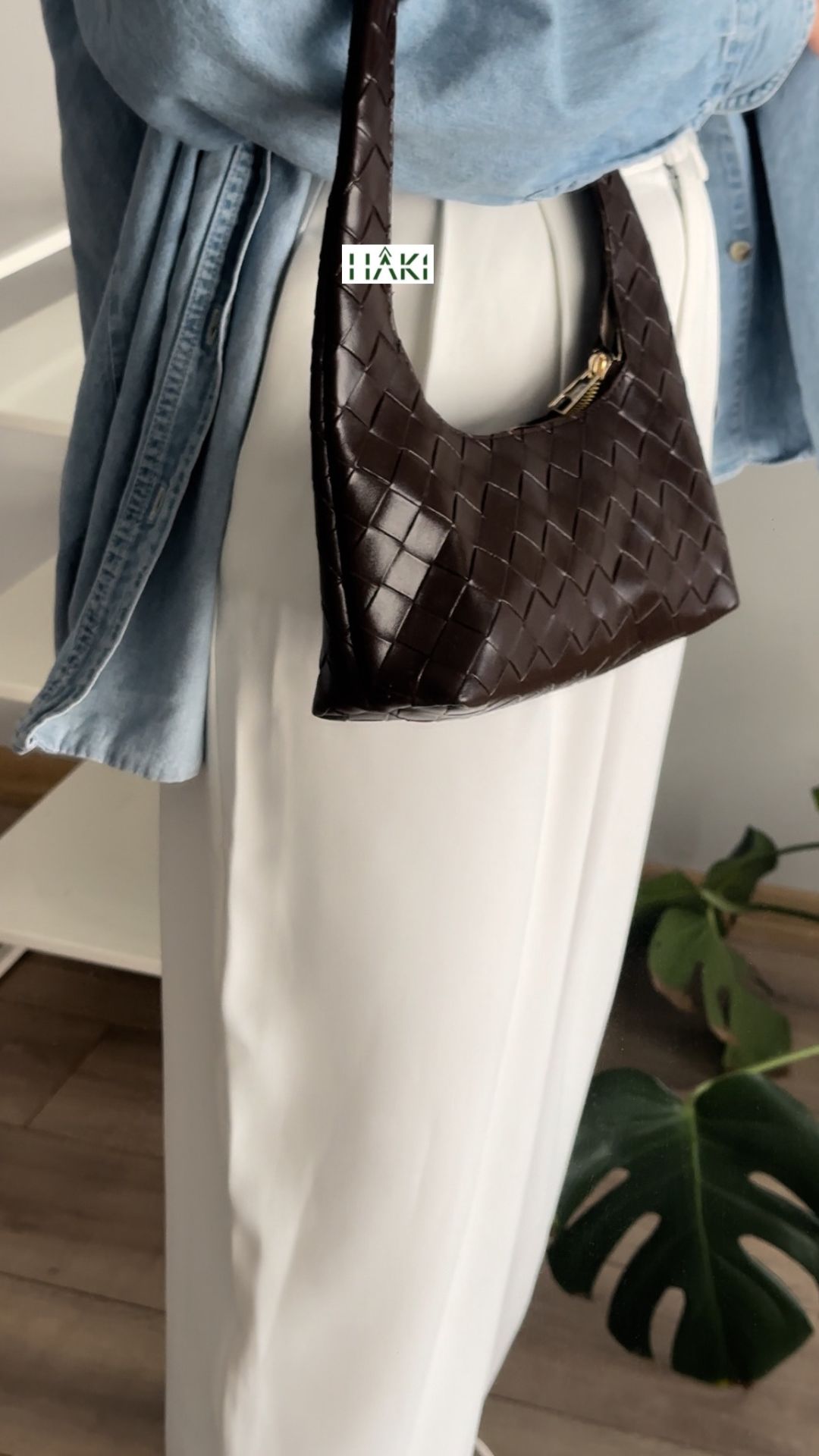 Chubu Örgü Desen Acı Kahve Baget Çanta