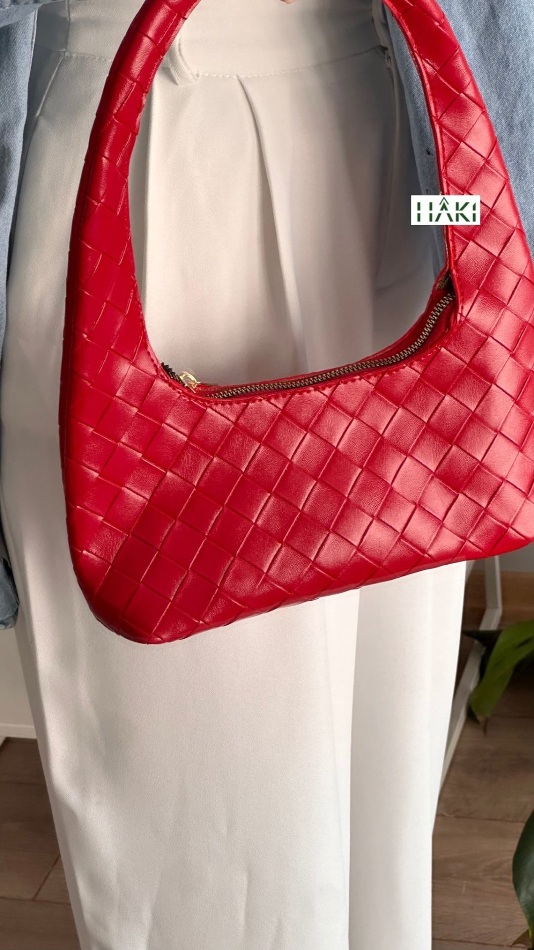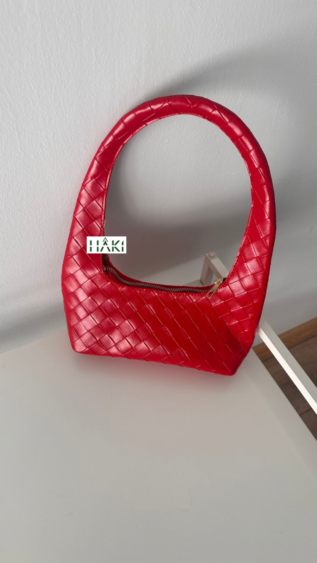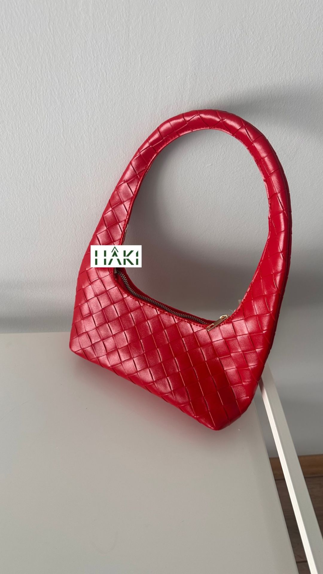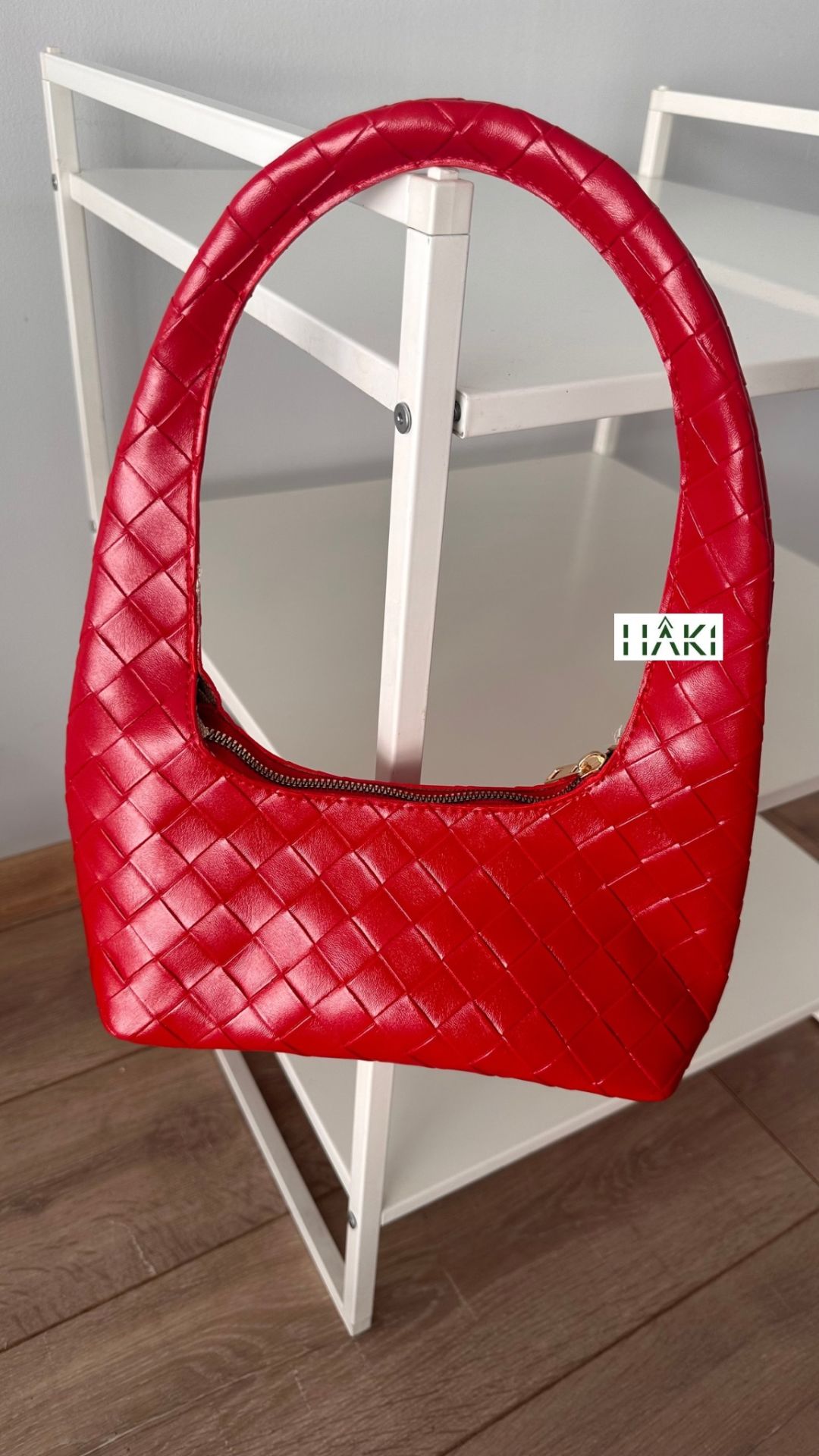 Chubu Örgü Desen Kırmızı Baget Çanta