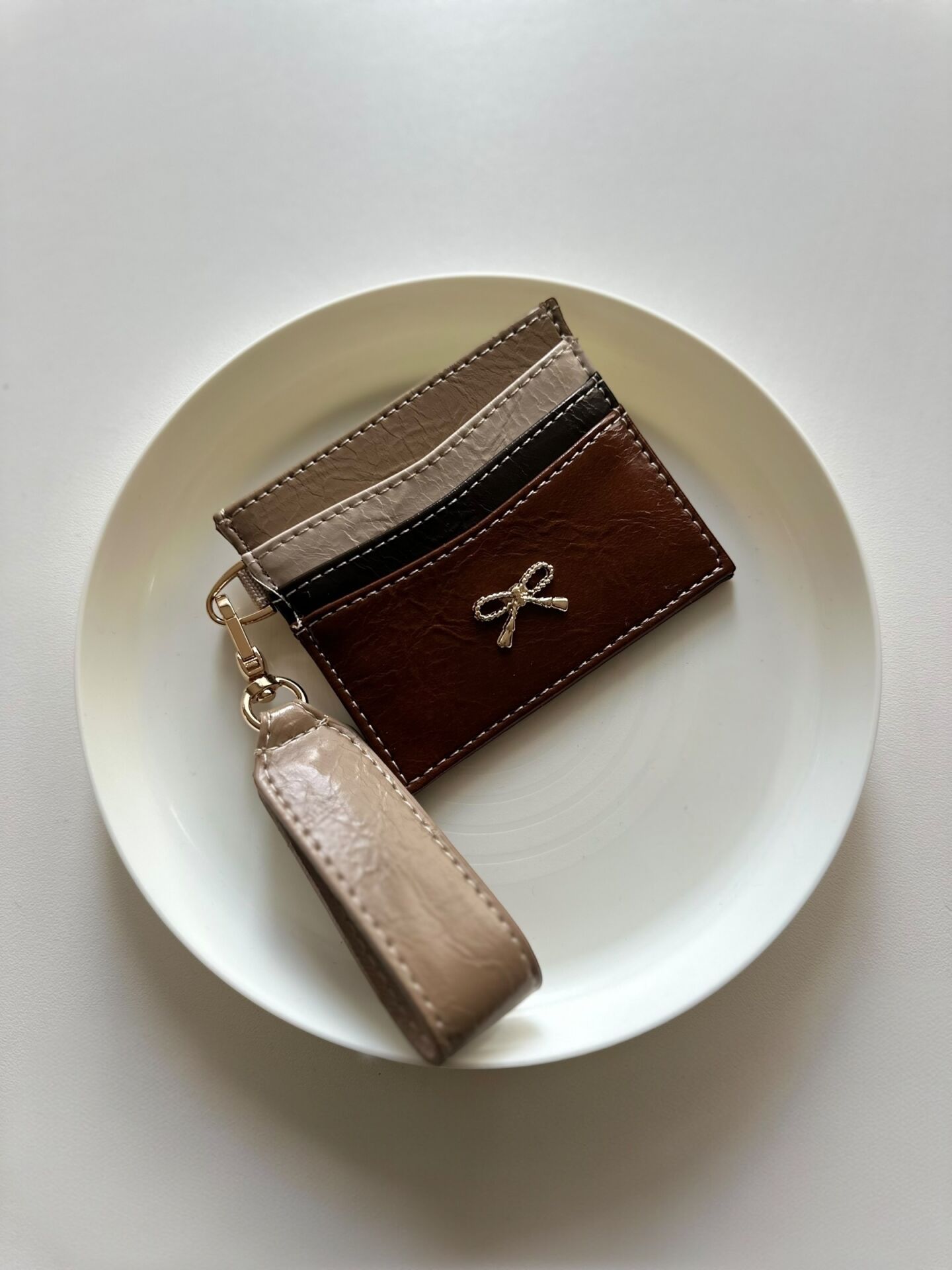 Çok Renkli Fiyonk Detaylı Parlak Anahtarlıklı Kartlık