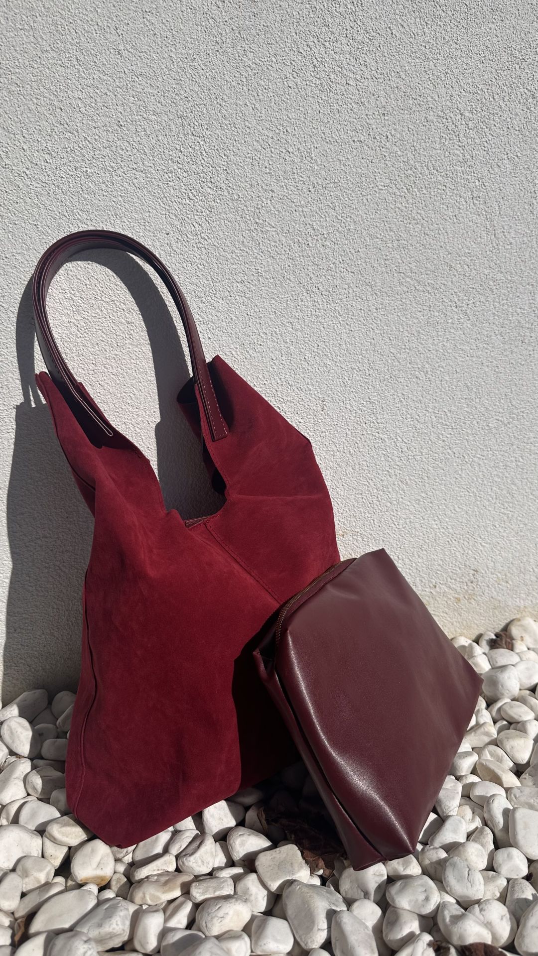 Cozy Yumuşak Süet Tote Çanta Bordo
