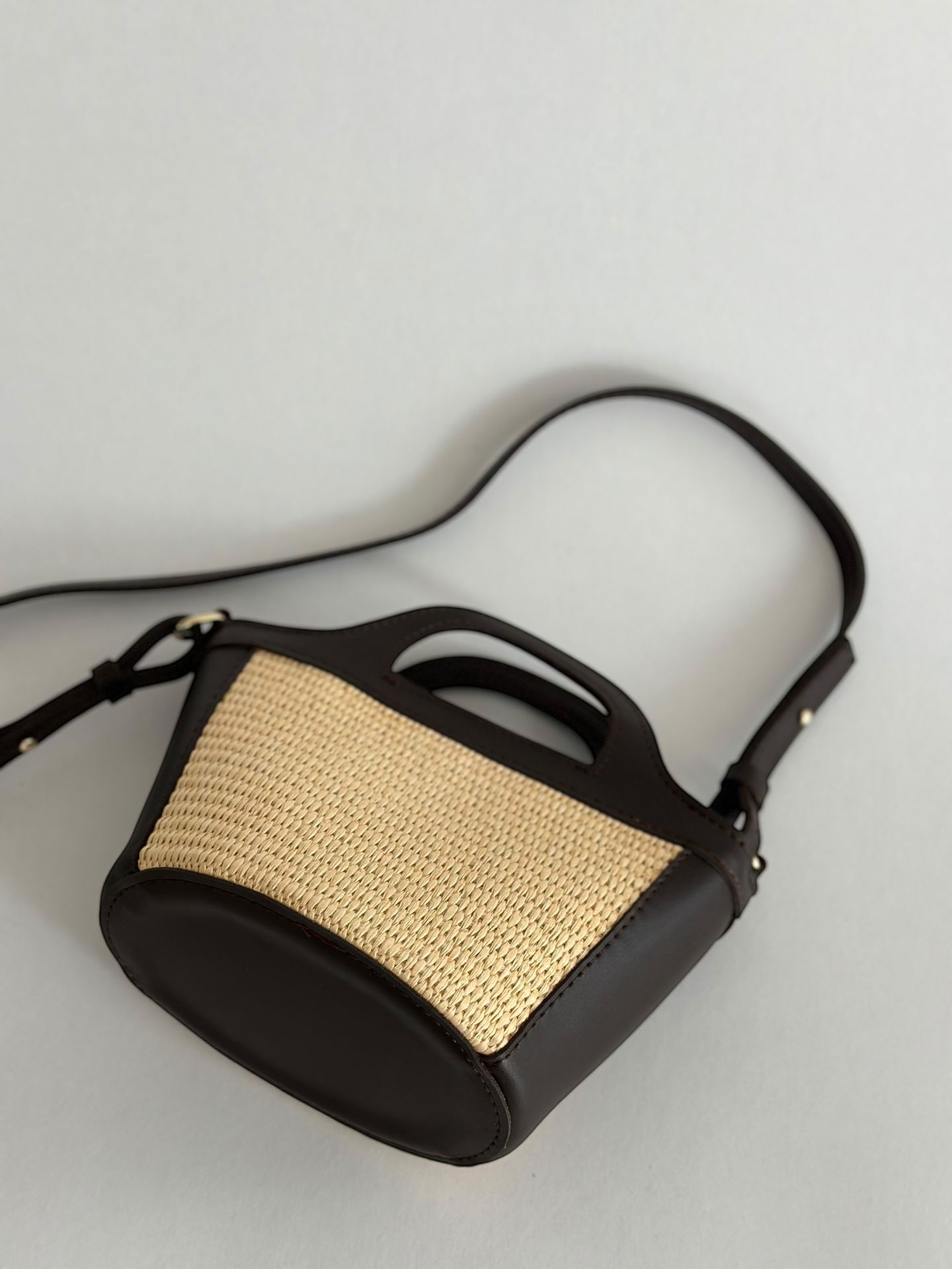 Duffle Hasır Detaylı Mini El ve Omuz Çantası Acı Kahve 29ZPNB1R9G Duffle Hasır Detaylı Mini El ve Omuz Çantası Acı Kahve