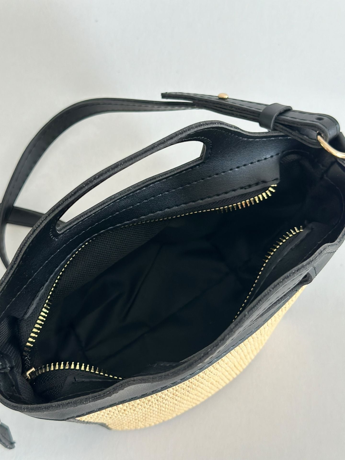 Duffle Hasır Detaylı Mini El ve Omuz Çantası Siyah
