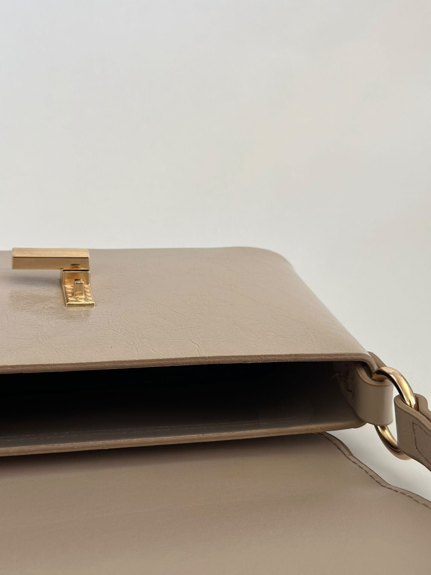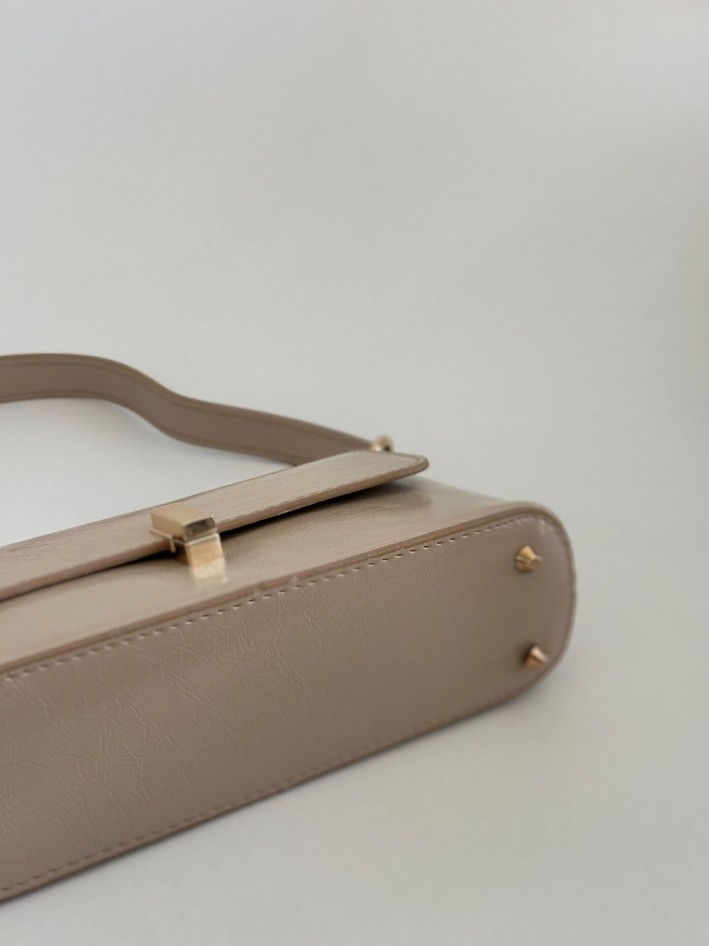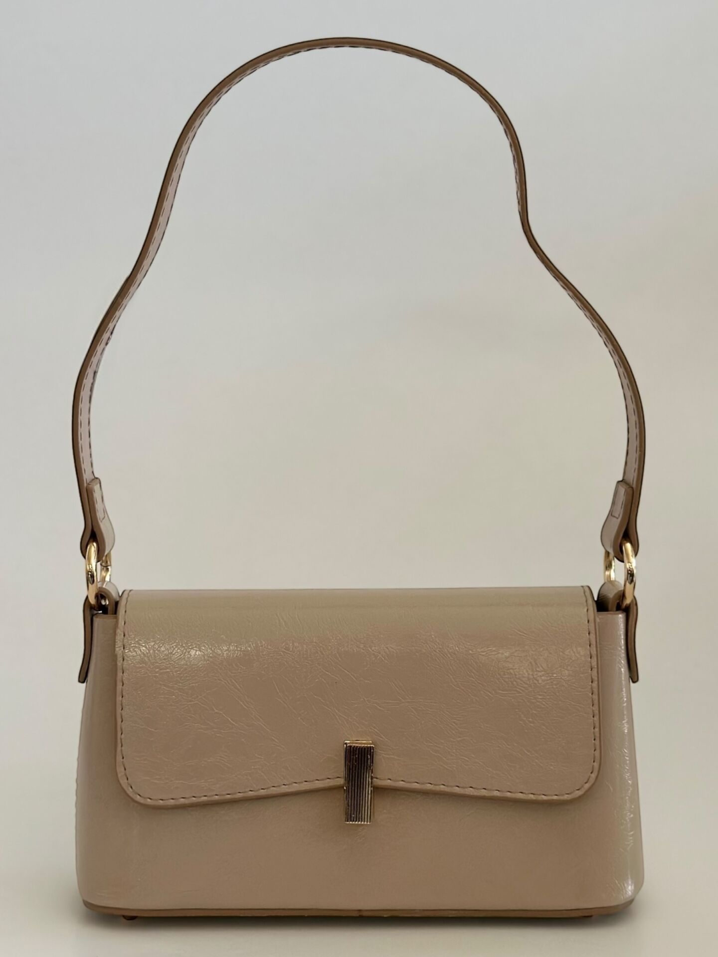 Minimal formu ve gold kilit detayı sayesinde çanta, sade ama güçlü bir stil sunar. Günlük kullanım için ideal boyutuyla telefon, cüzdan, anahtar ve küçük eşyalarınızı rahatlıkla taşıyabilirsiniz.
