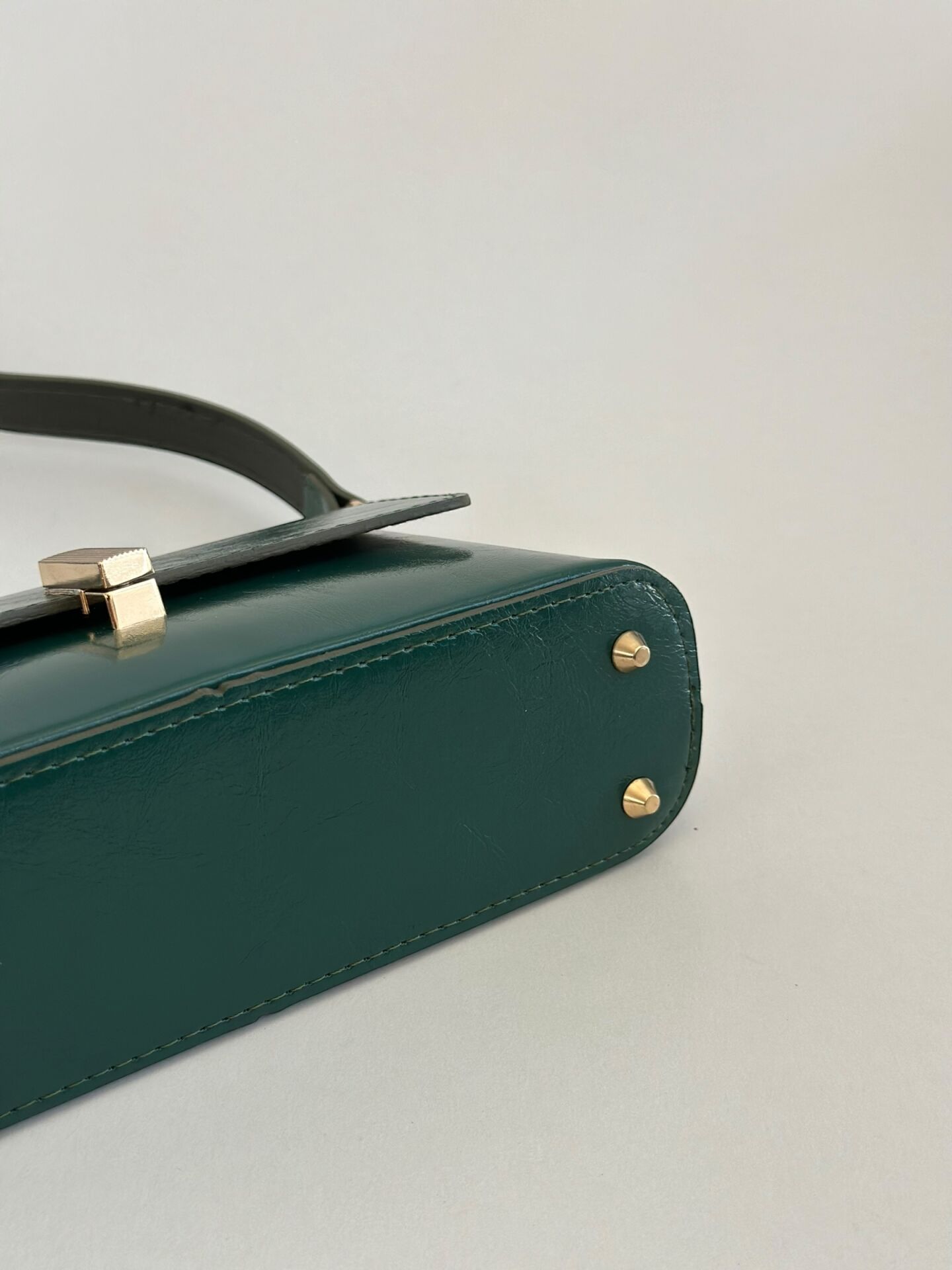 Minimal formu ve gold kilit detayı sayesinde çanta, sade ama güçlü bir stil sunar. Günlük kullanım için ideal boyutuyla telefon, cüzdan, anahtar ve küçük eşyalarınızı rahatlıkla taşıyabilirsiniz.