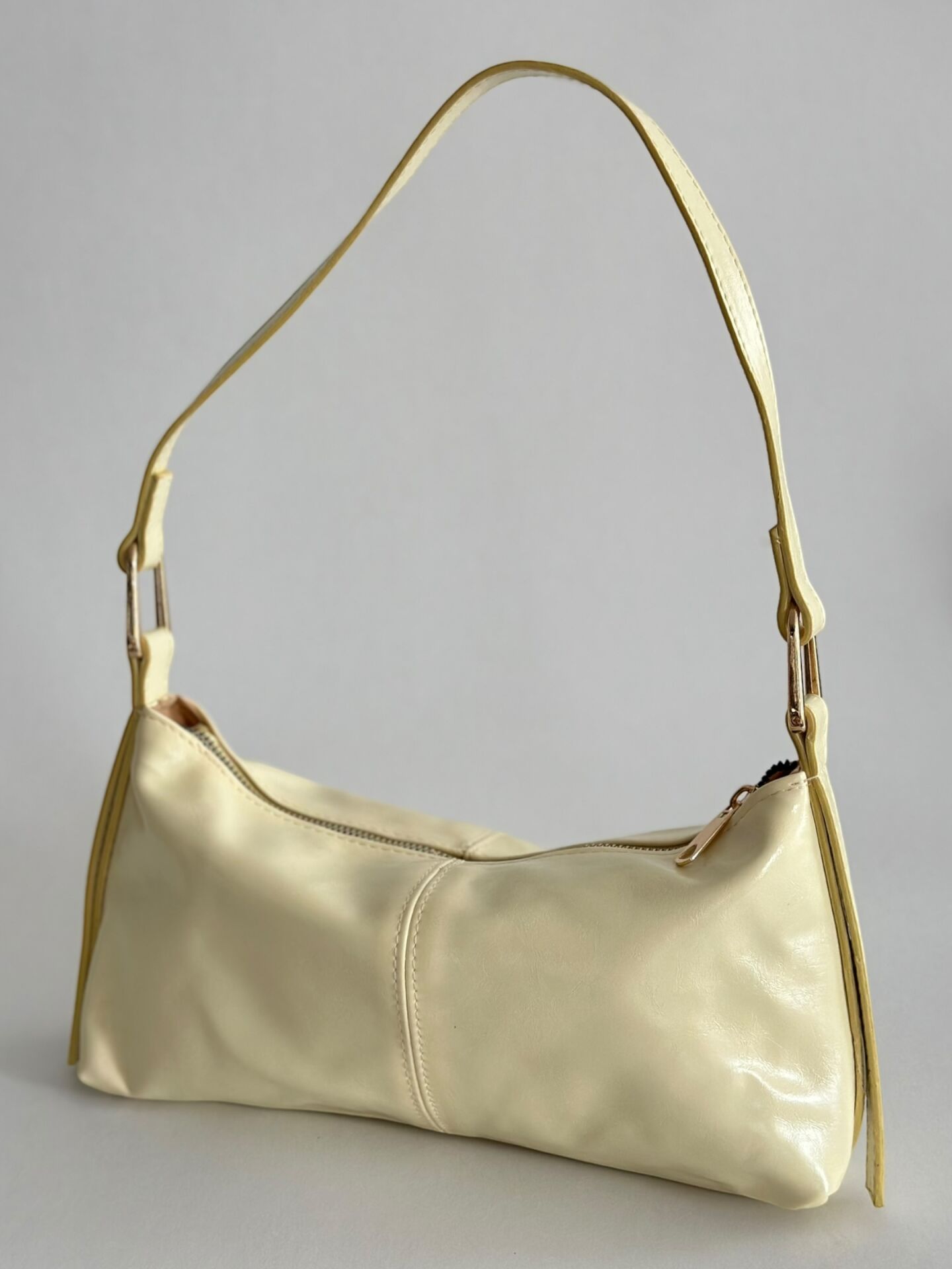 Zarif duruşu ve yumuşak formuyla öne çıkan bu omuz çantası, günlük stilinize sofistike bir dokunuş katmak için tasarlandı. 27 cm genişliği ve 15 cm yüksekliğiyle minimal ama kullanışlı bir alan sunar. İç kısmındaki fermuarlı mini gözü sayesinde küçük eşyalarınızı güvenle saklayabilirsiniz.