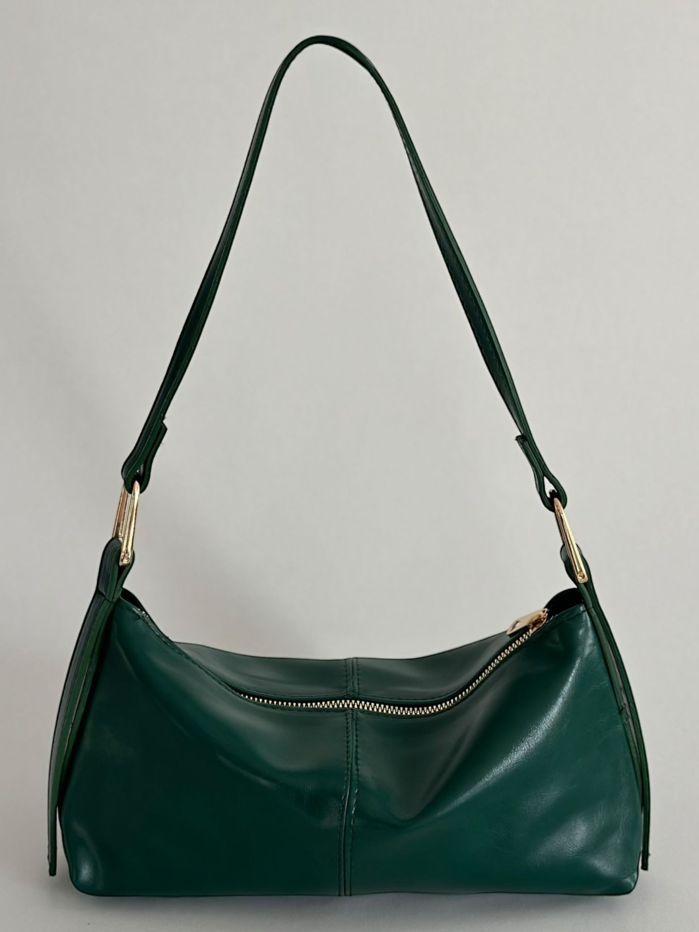 Zarif duruşu ve yumuşak formuyla öne çıkan bu omuz çantası, günlük stilinize sofistike bir dokunuş katmak için tasarlandı. 27 cm genişliği ve 15 cm yüksekliğiyle minimal ama kullanışlı bir alan sunar. İç kısmındaki fermuarlı mini gözü sayesinde küçük eşyalarınızı güvenle saklayabilirsiniz.