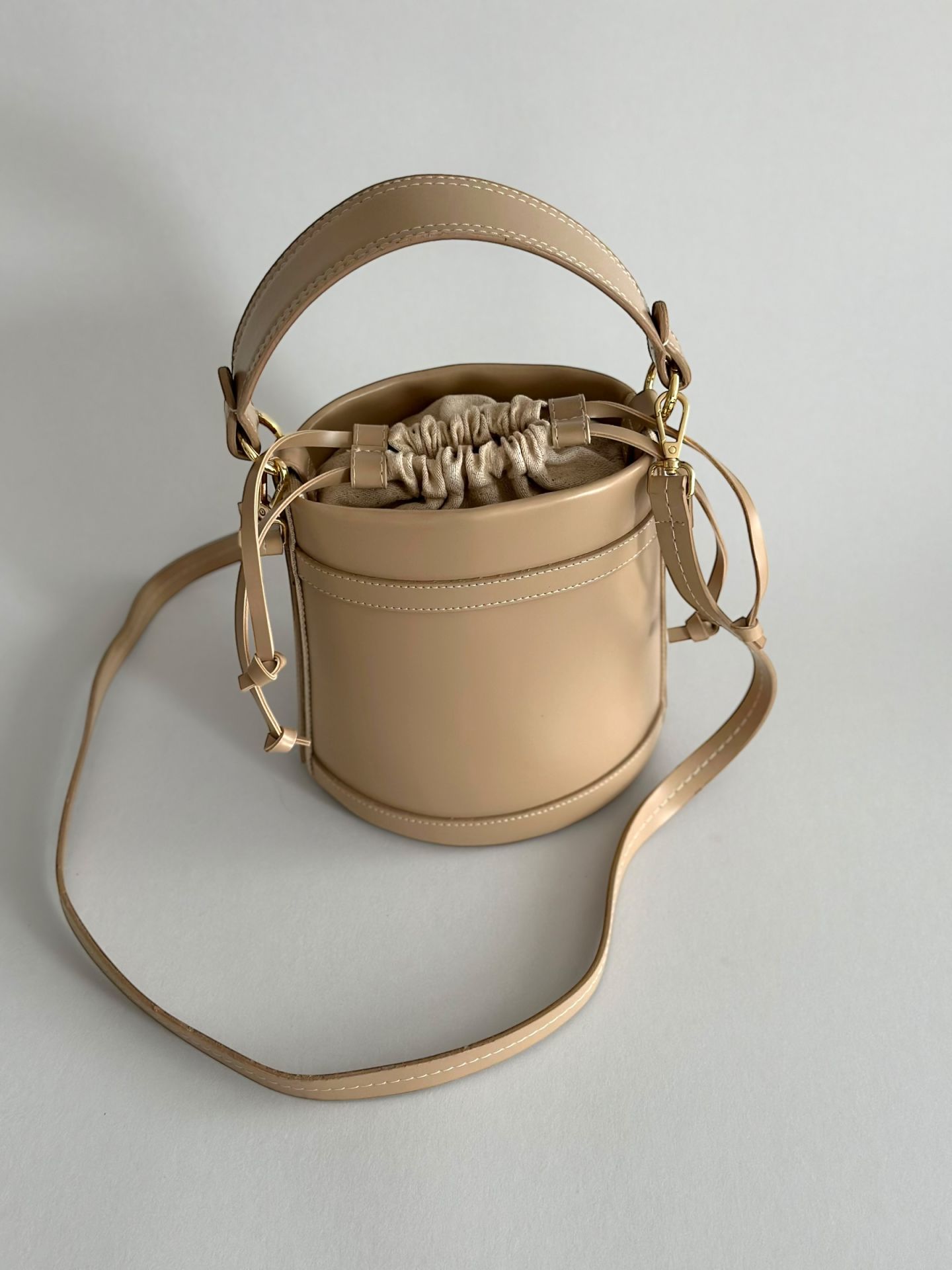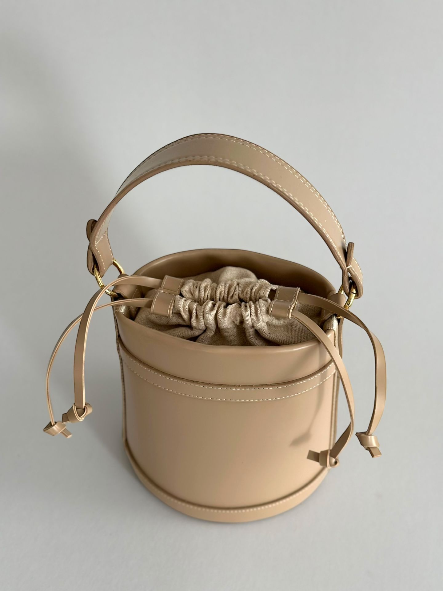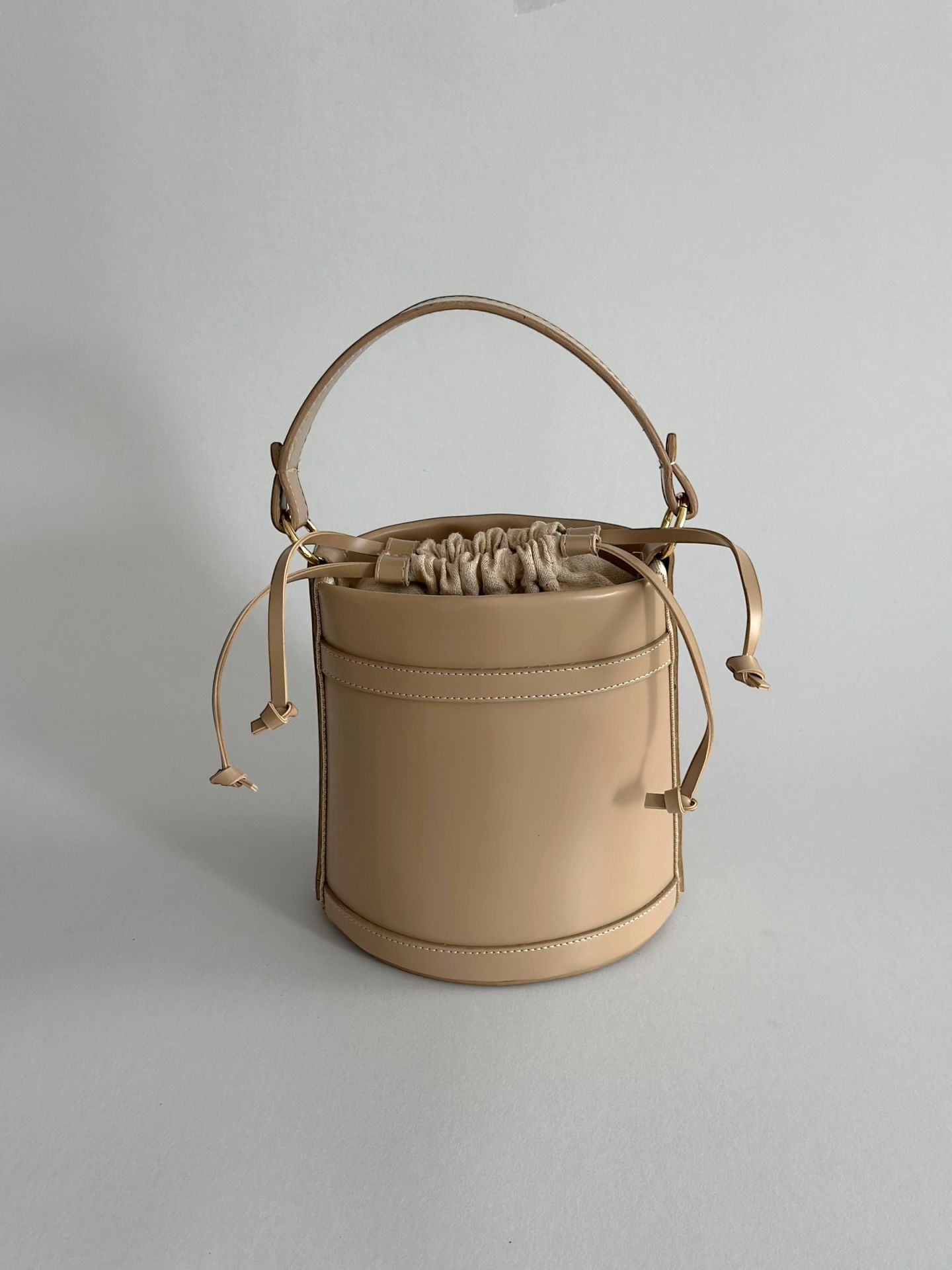 Garmen Büzgü Detaylı Kova El ve Omuz Çantası Bej