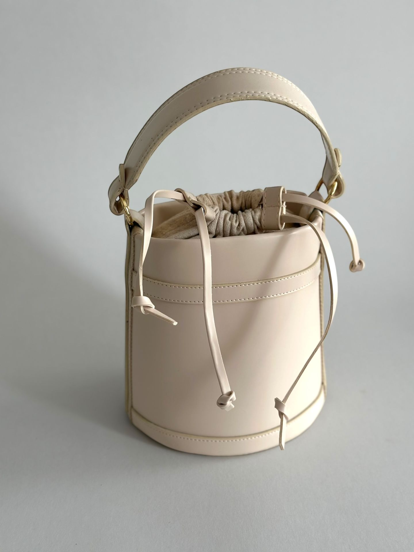 • Şık ve Modern Tasarım: Kova formu ve büzgü detayıyla sofistike bir görünüm.