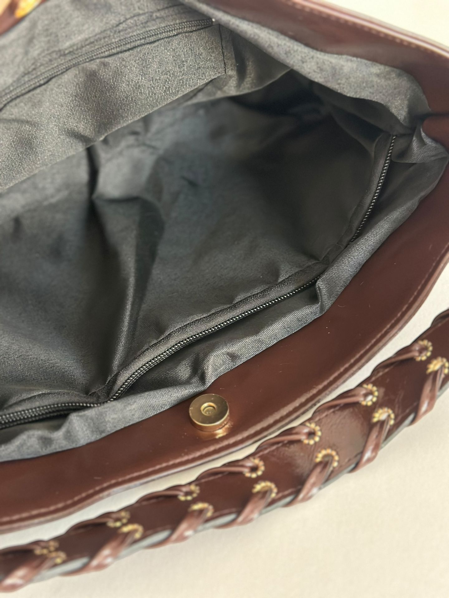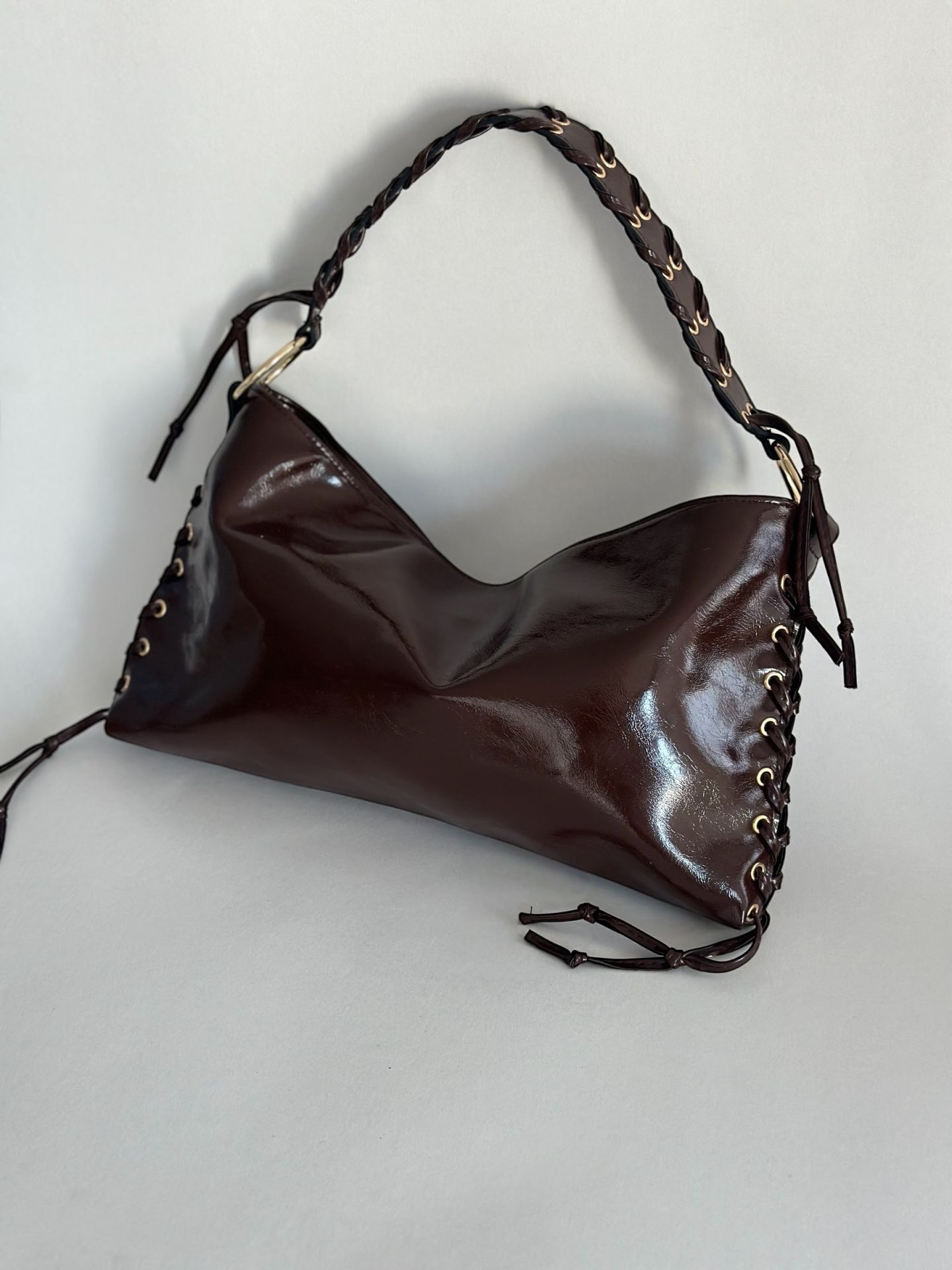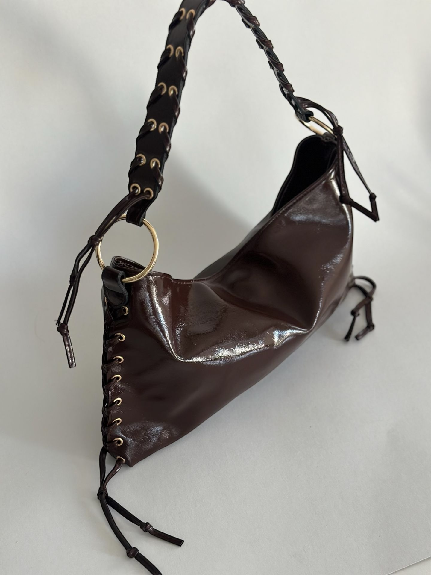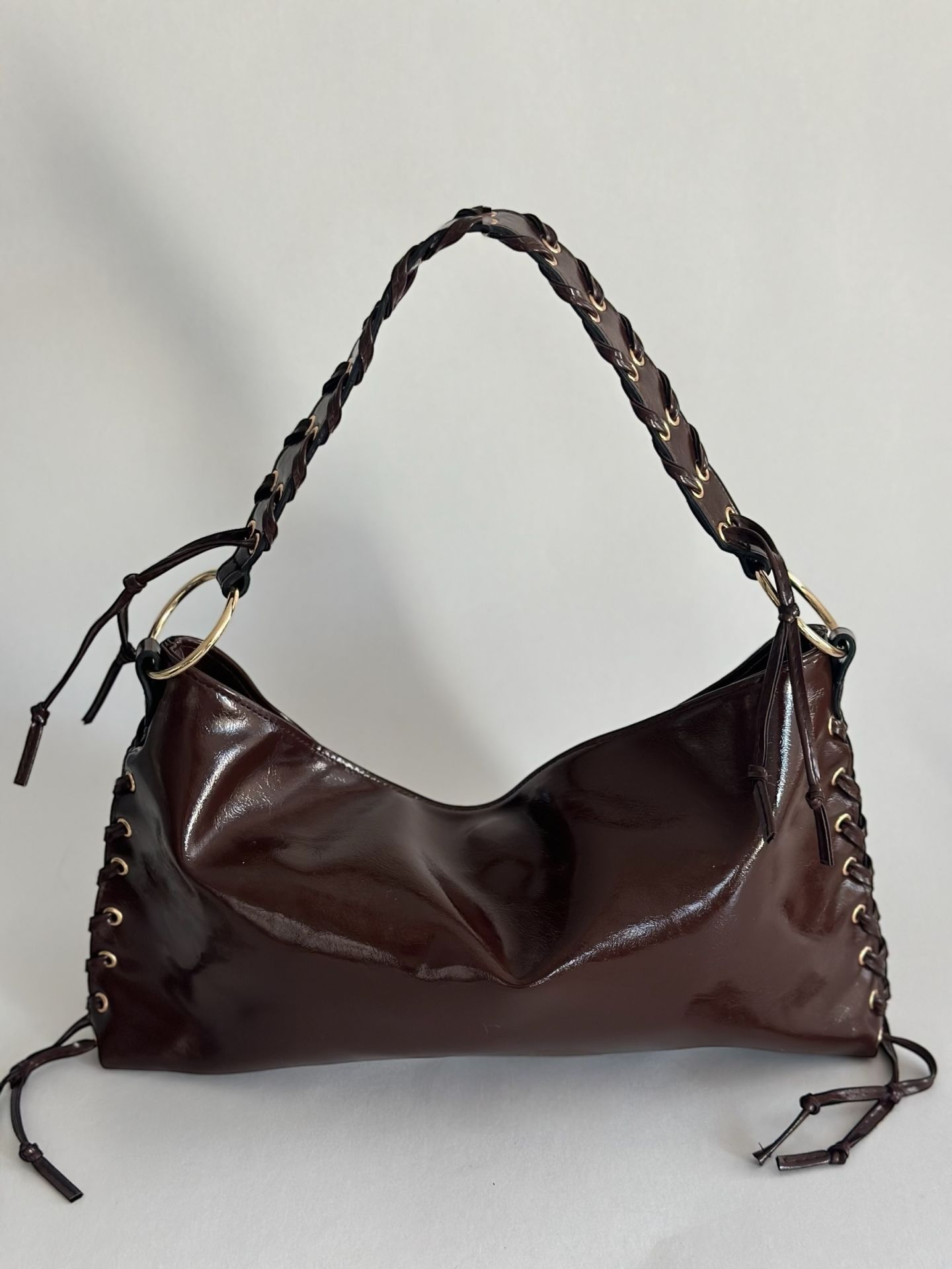✅ Yanlarındaki bağcık detayları ve altın renk metal halkalar , çantaya şık ve dikkat çekici bir hava katar.