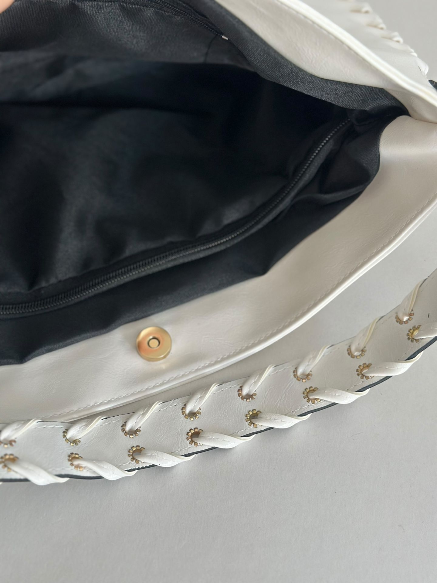 Jena Örgü Askılı Salaş El ve Omuz Çantası Beyaz