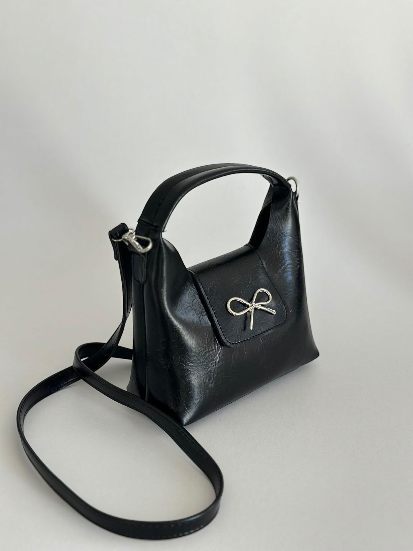 Lea Fiyonk Detay Mini El ve Omuz Çantası Siyah