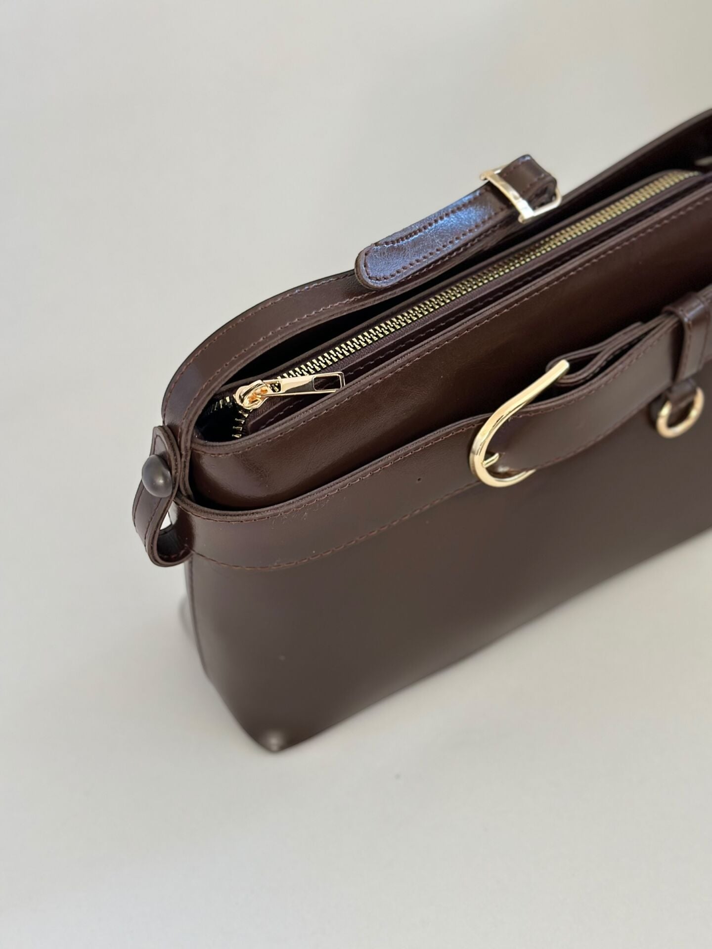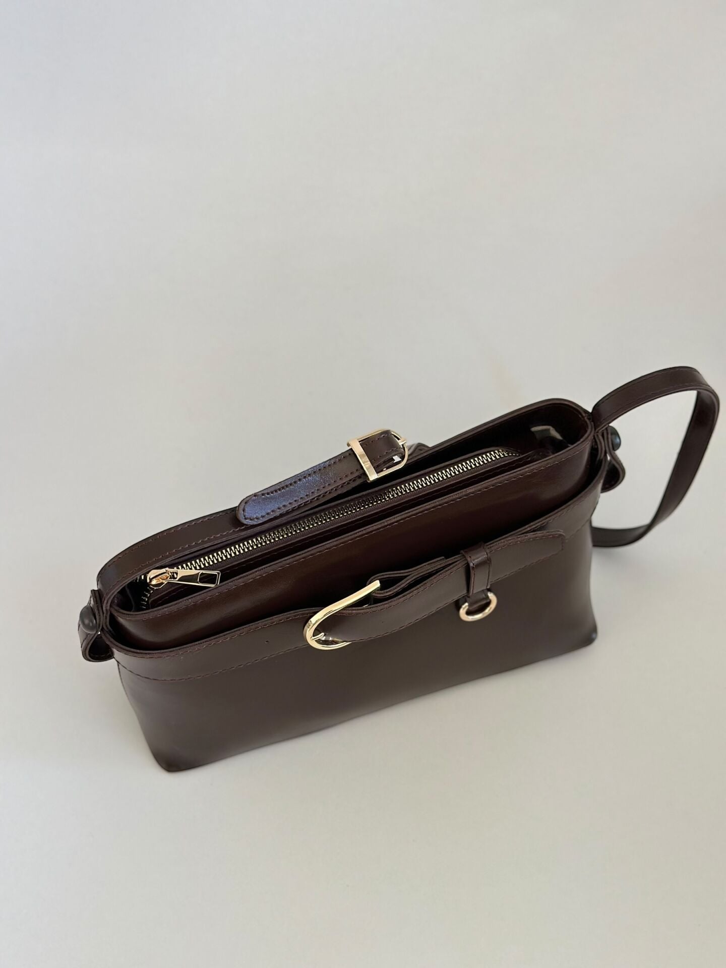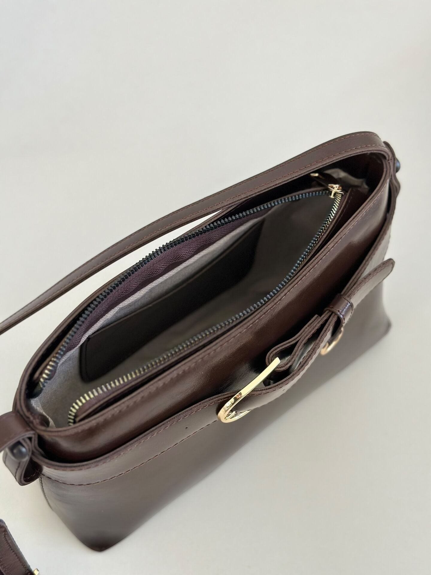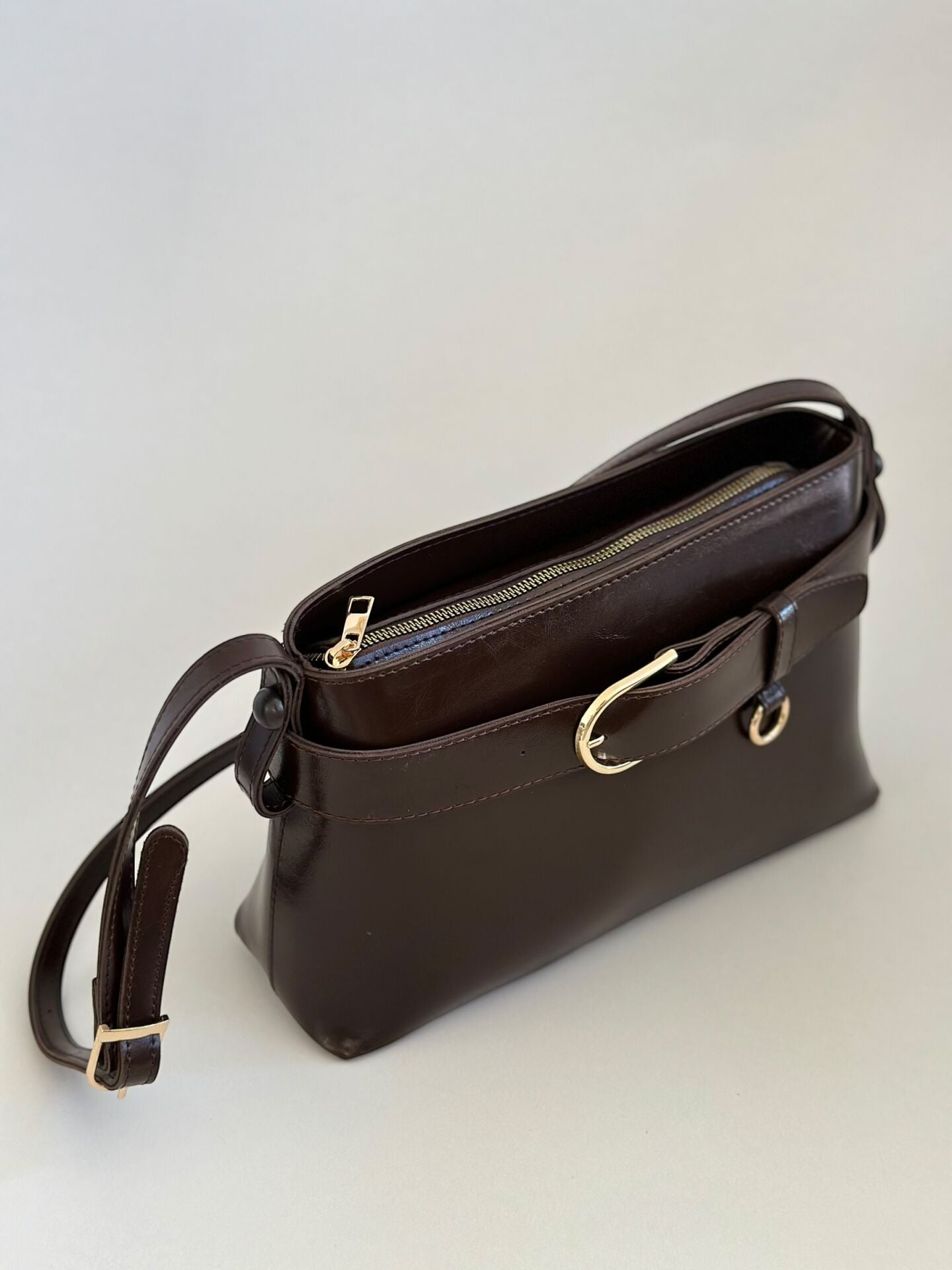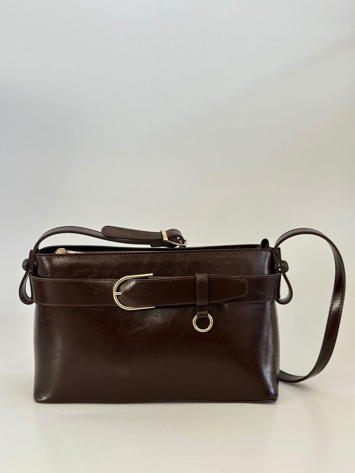 Ön yüzeyde yer alan şık kemer detayı ve gold aksesuarları, çantaya güçlü ve sofistike bir görünüm kazandırır. Günlük kullanım için ideal olan yapısı sayesinde telefon, cüzdan, anahtar ve diğer temel eşyalarınızı rahatlıkla taşıyabilirsiniz.