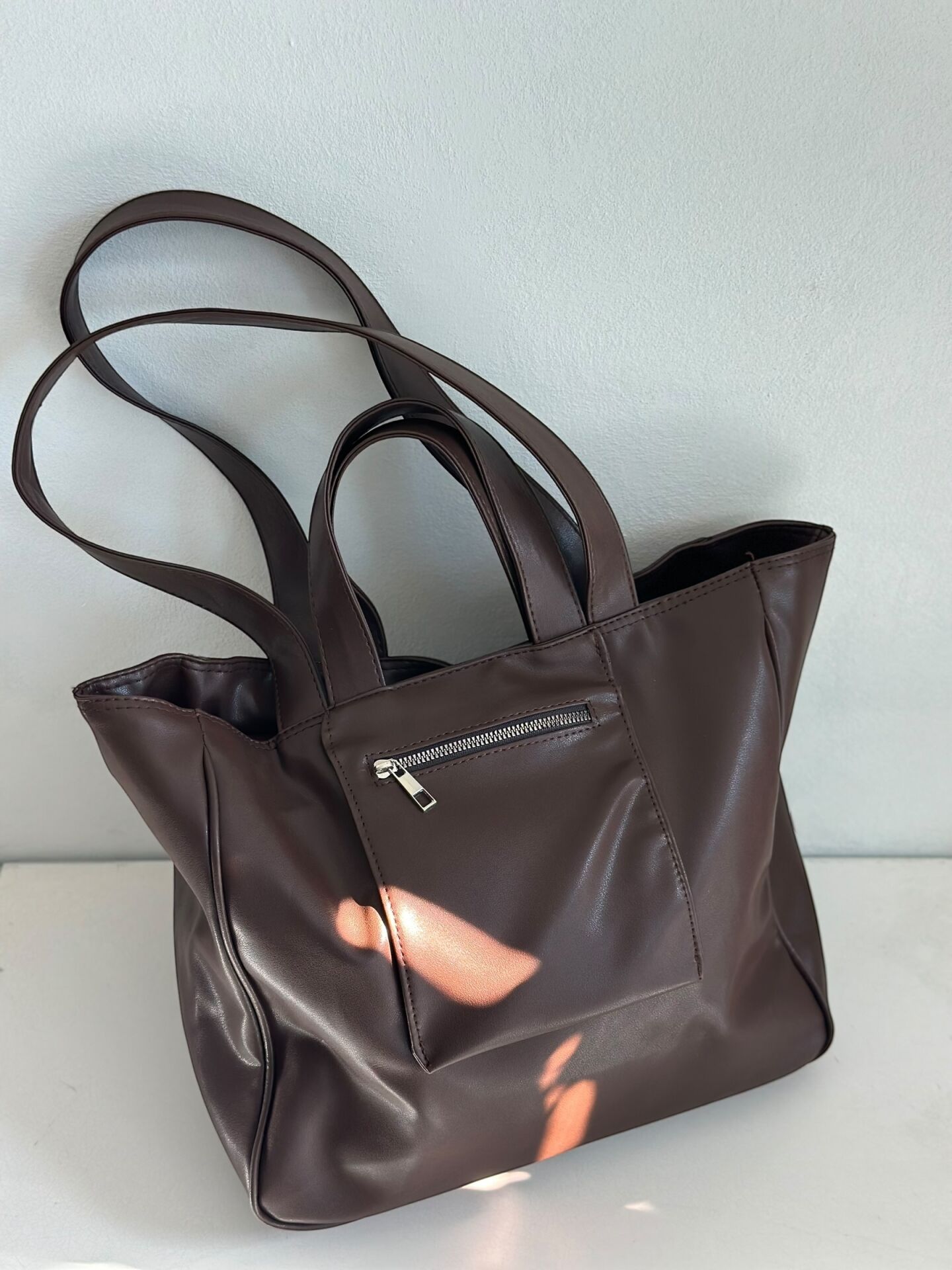 Mona Çift Saplı El ve Omuz Çantası Acı Kahve