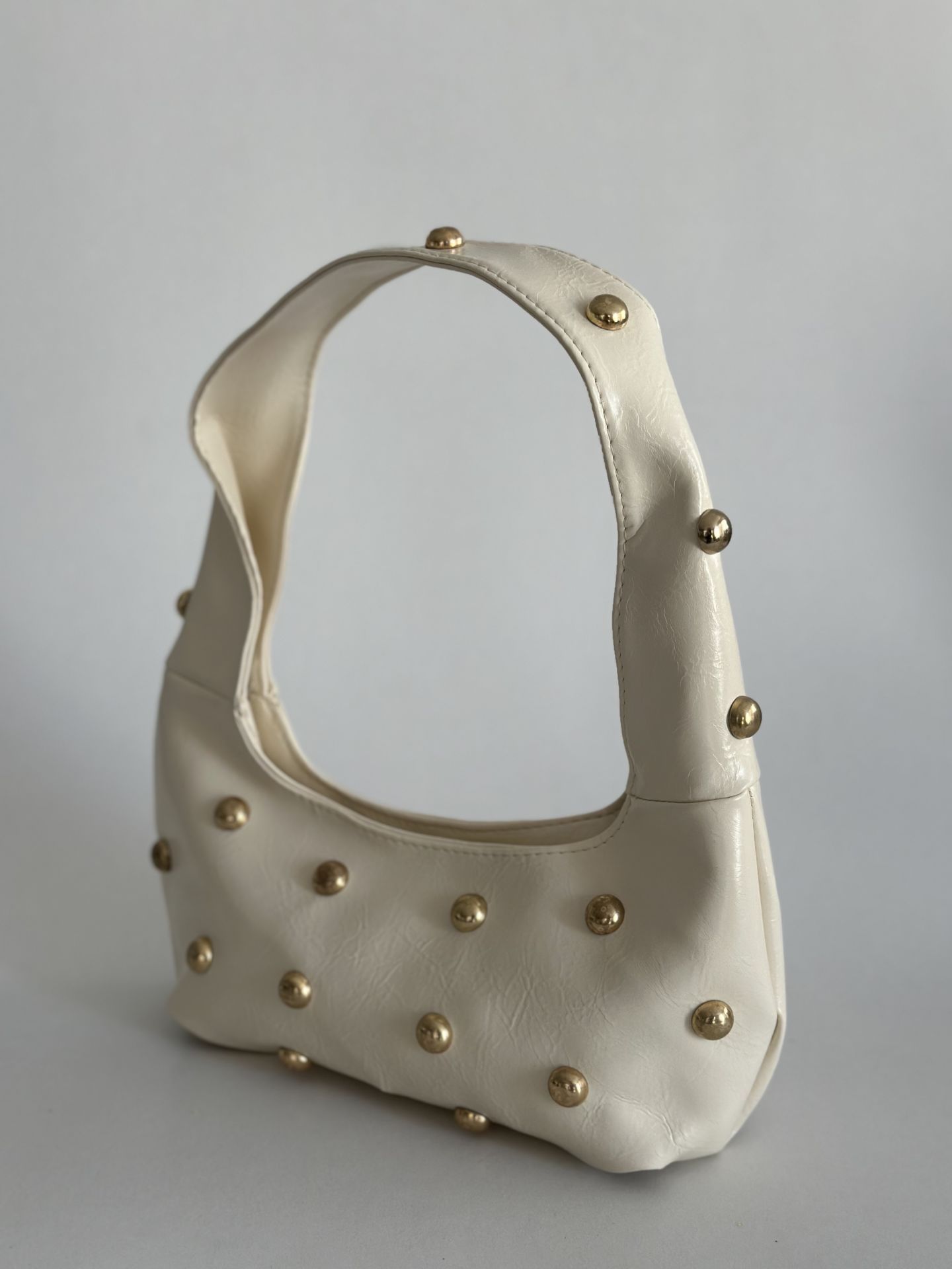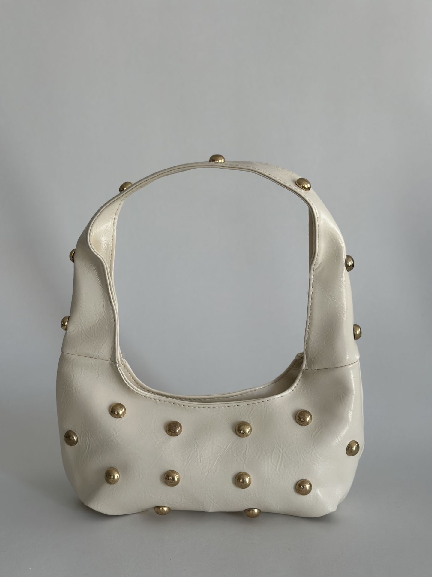 Mona Zımba Detaylı Mini El ve Omuz Çantası Krem