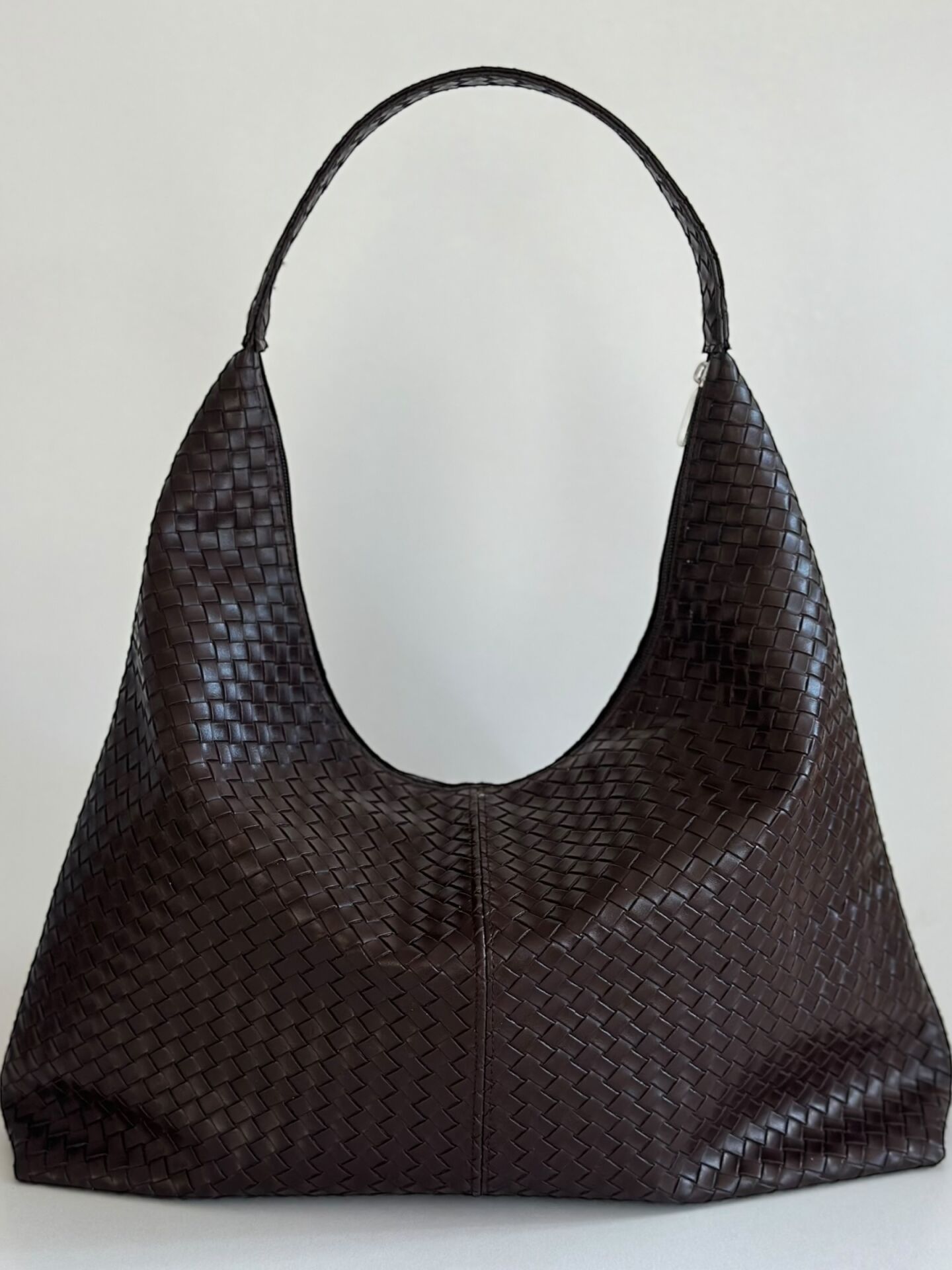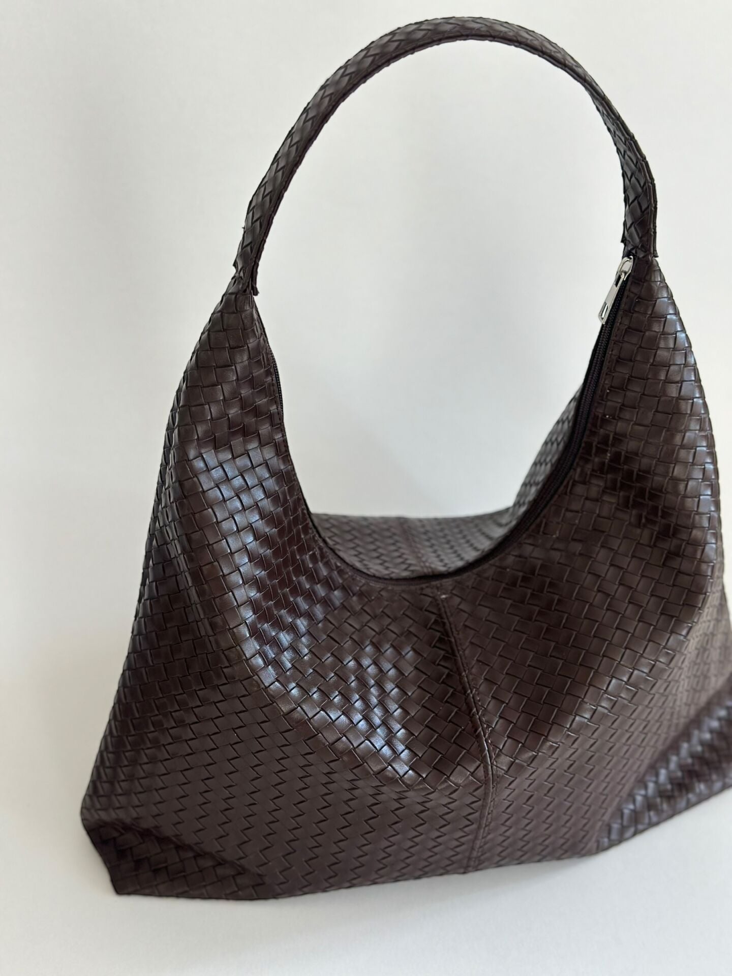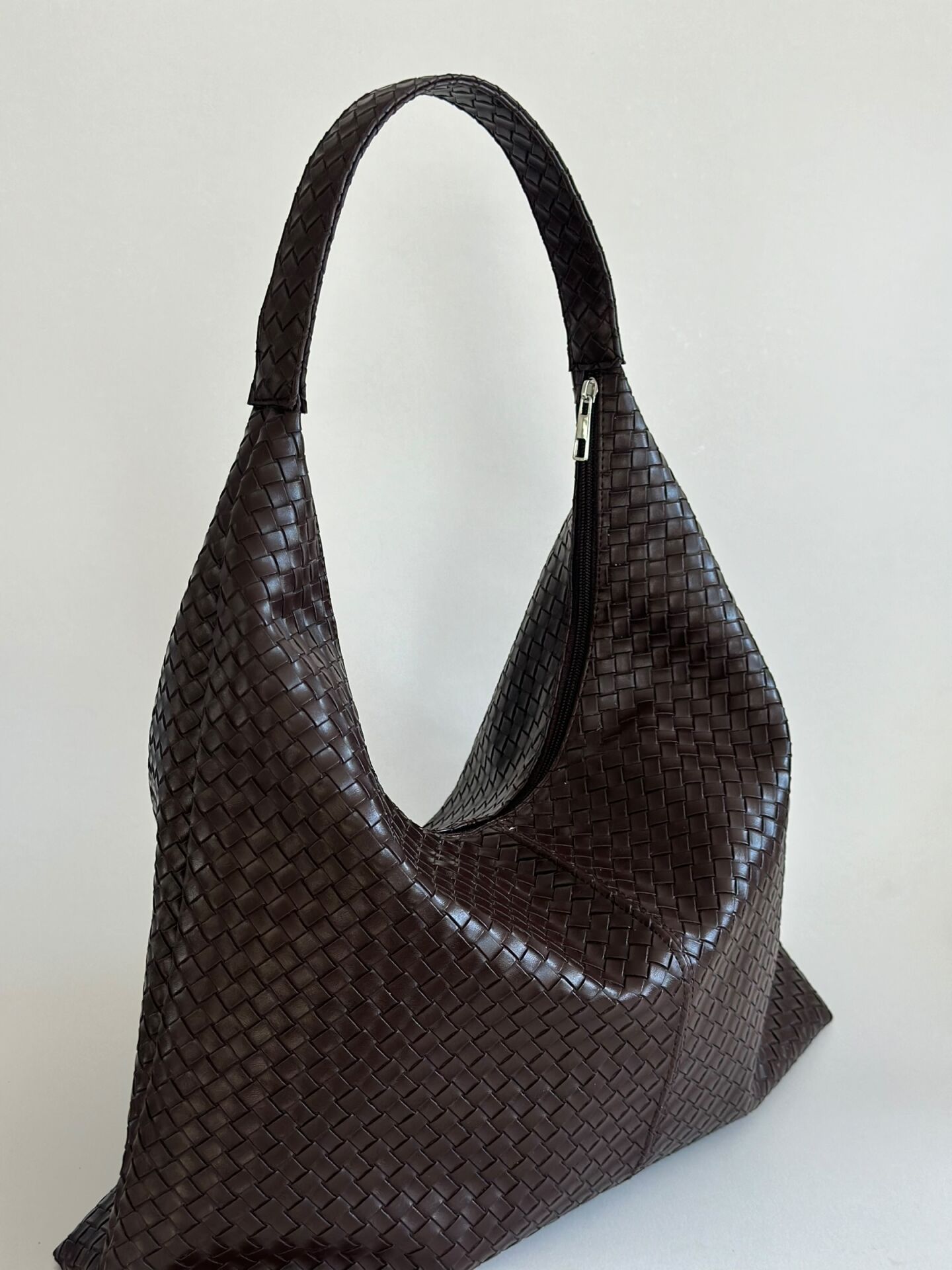 Nora Büyük Boy Örgü Desenli Salaş Omuz Çantası Acı Kahve