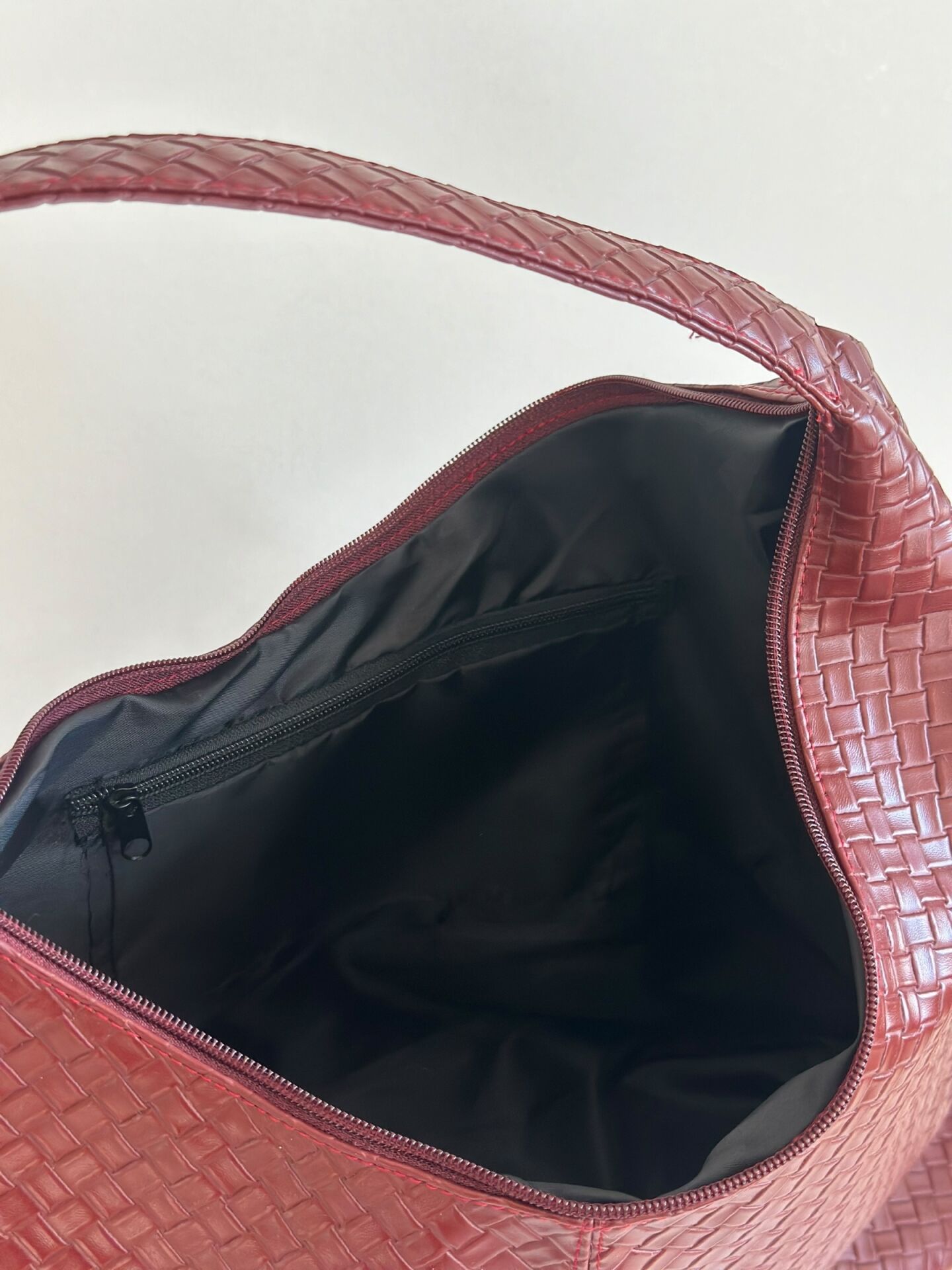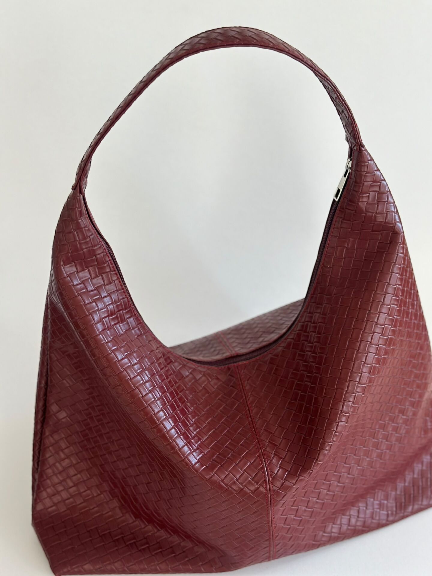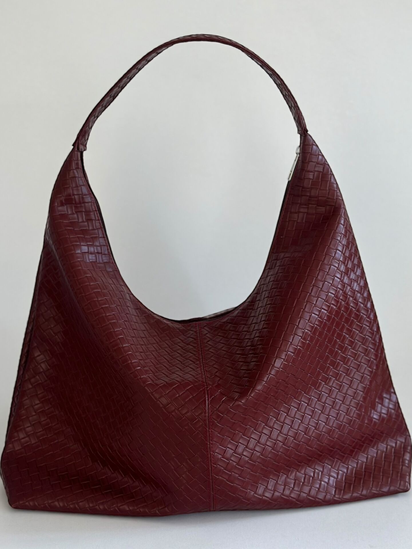 Nora Büyük Boy Örgü Desenli Salaş Omuz Çantası Bordo