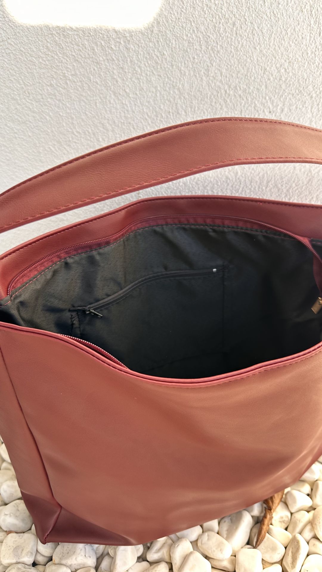İç kısmında minik fermuarlı gzö bulunmakta.