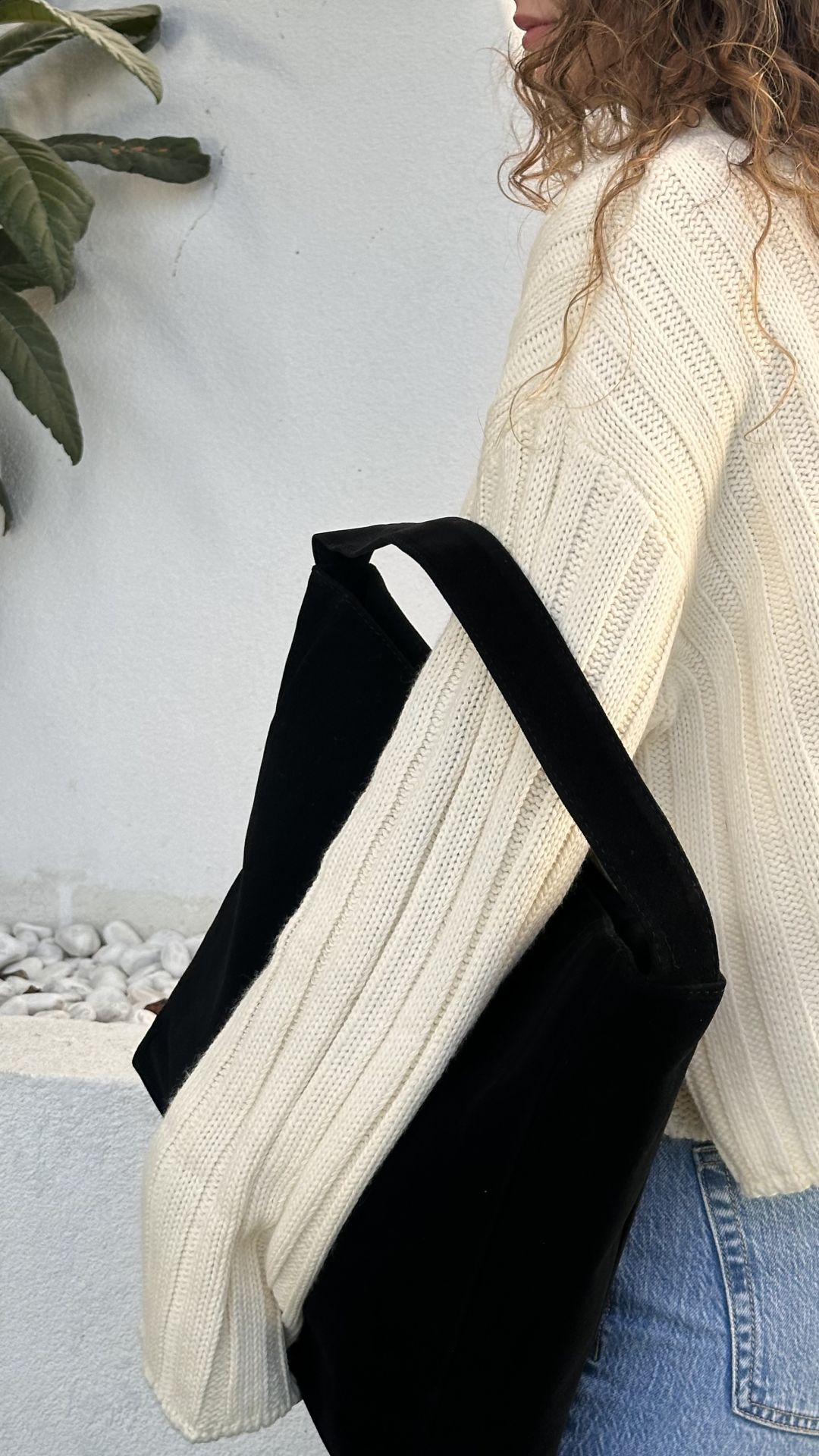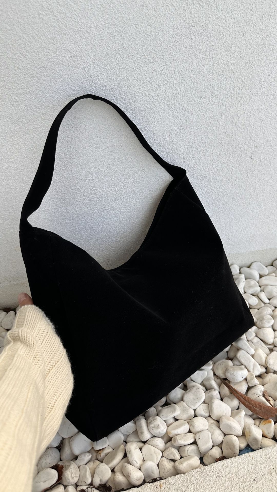 Nuka Süet Kalın Askılı El ve Omuz Çantası Siyah