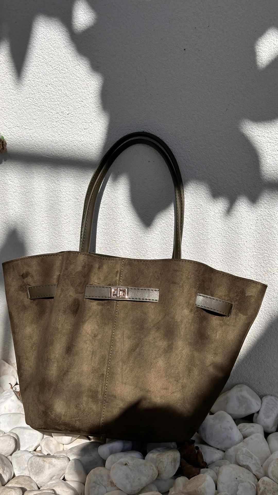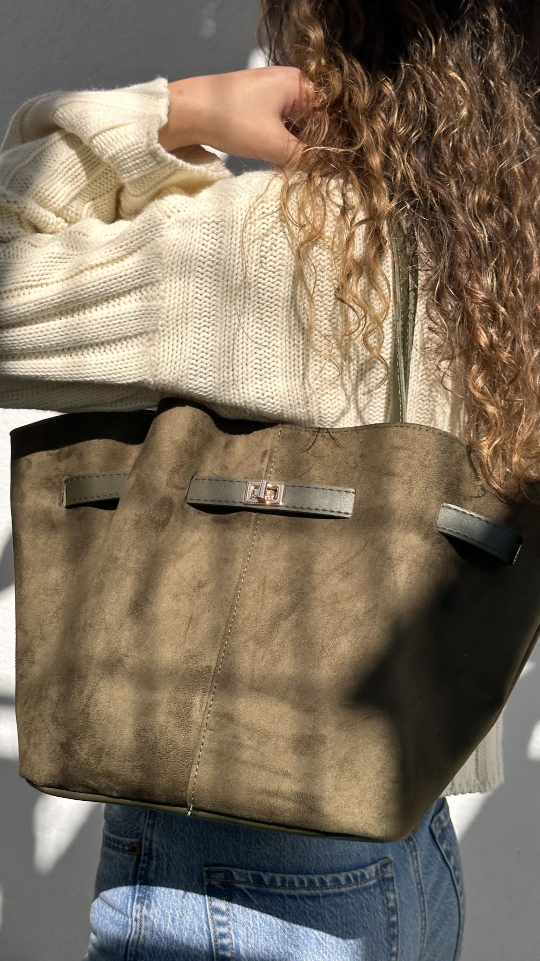 Göz alıcı süet dokusuyla bu çanta, her stile uyum sağlayan zarif bir tasarıma sahip.