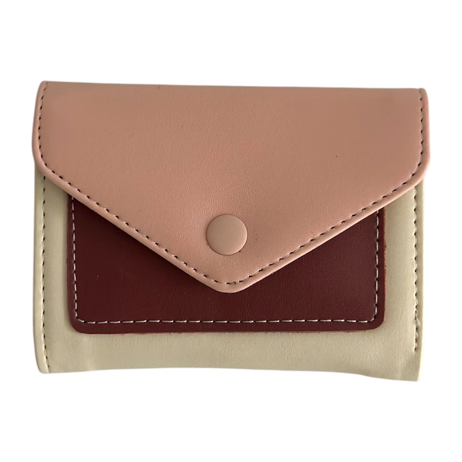 Trio Kağıt Para Bölmeli Kartlık Cüzdan Krem-Bordo-Pudra