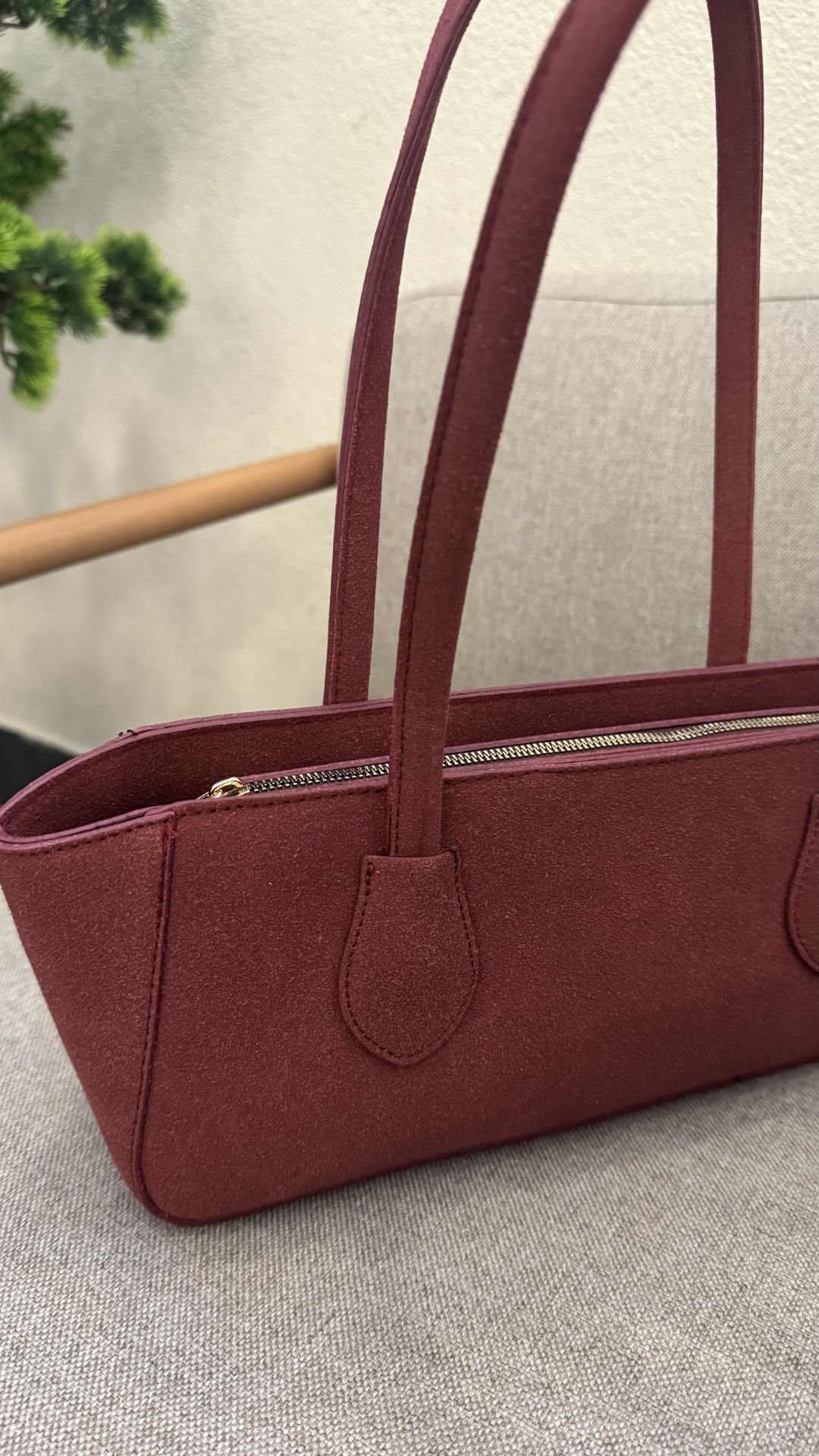 31 cm genişliği, 15 cm yüksekliği ve 23 cm askı boyuyla bu suni süet çanta, günlük hayatınıza mükemmel uyum sağlamak için tasarlandı. Fermuarlı kapama detayı, eşyalarınızı güvende tutarken, iç hacmi sayesinde okuma kitabı, cüzdan, not defteri, ruj, el kremi ve daha fazlasını kolayca taşımanıza olanak tanır.